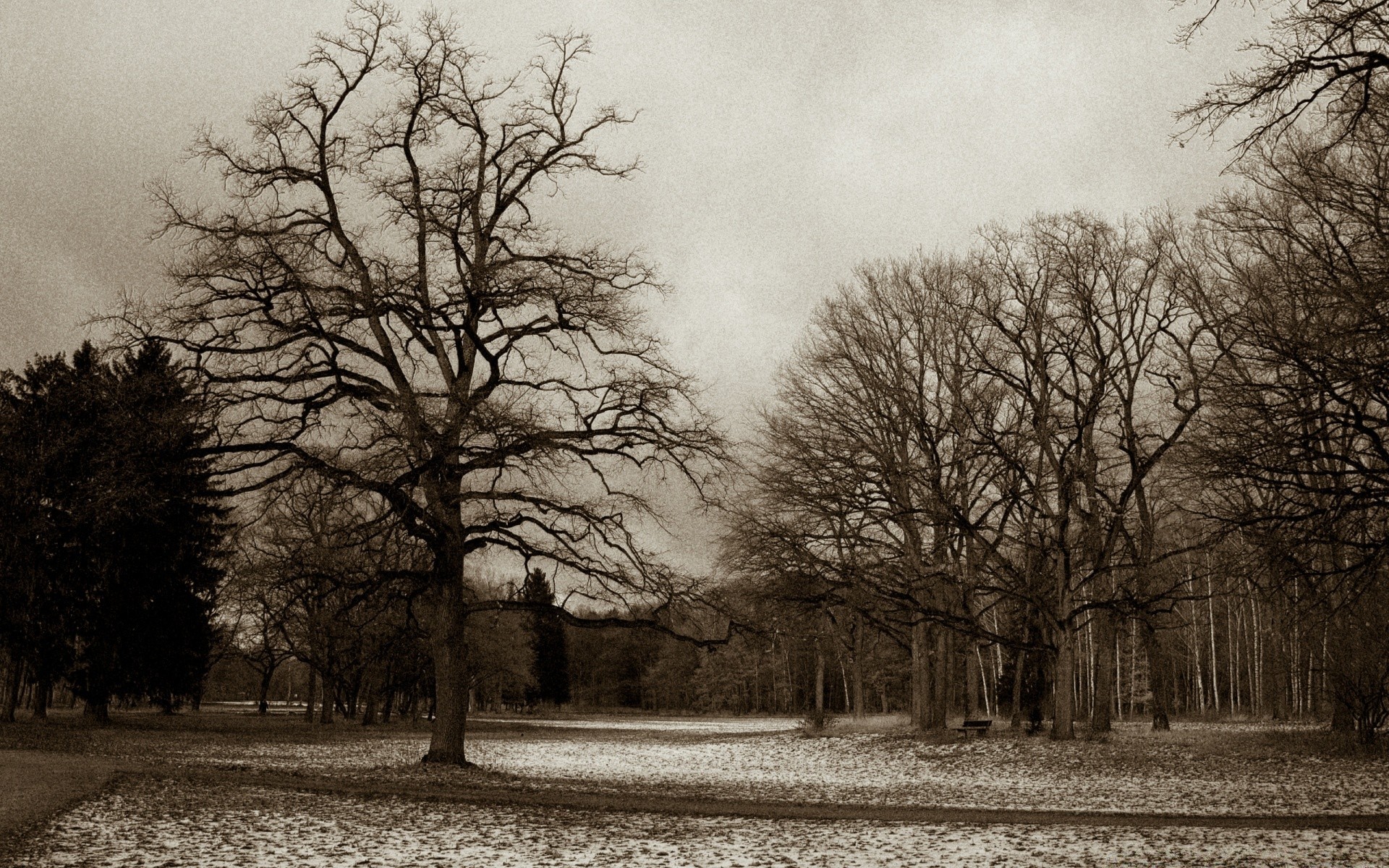 Paesaggio autunnale in bianco e nero con cielo coperto
