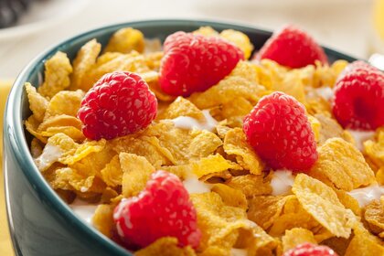 Fragola cibo bacche latte sfondo bianco cereali per la colazione