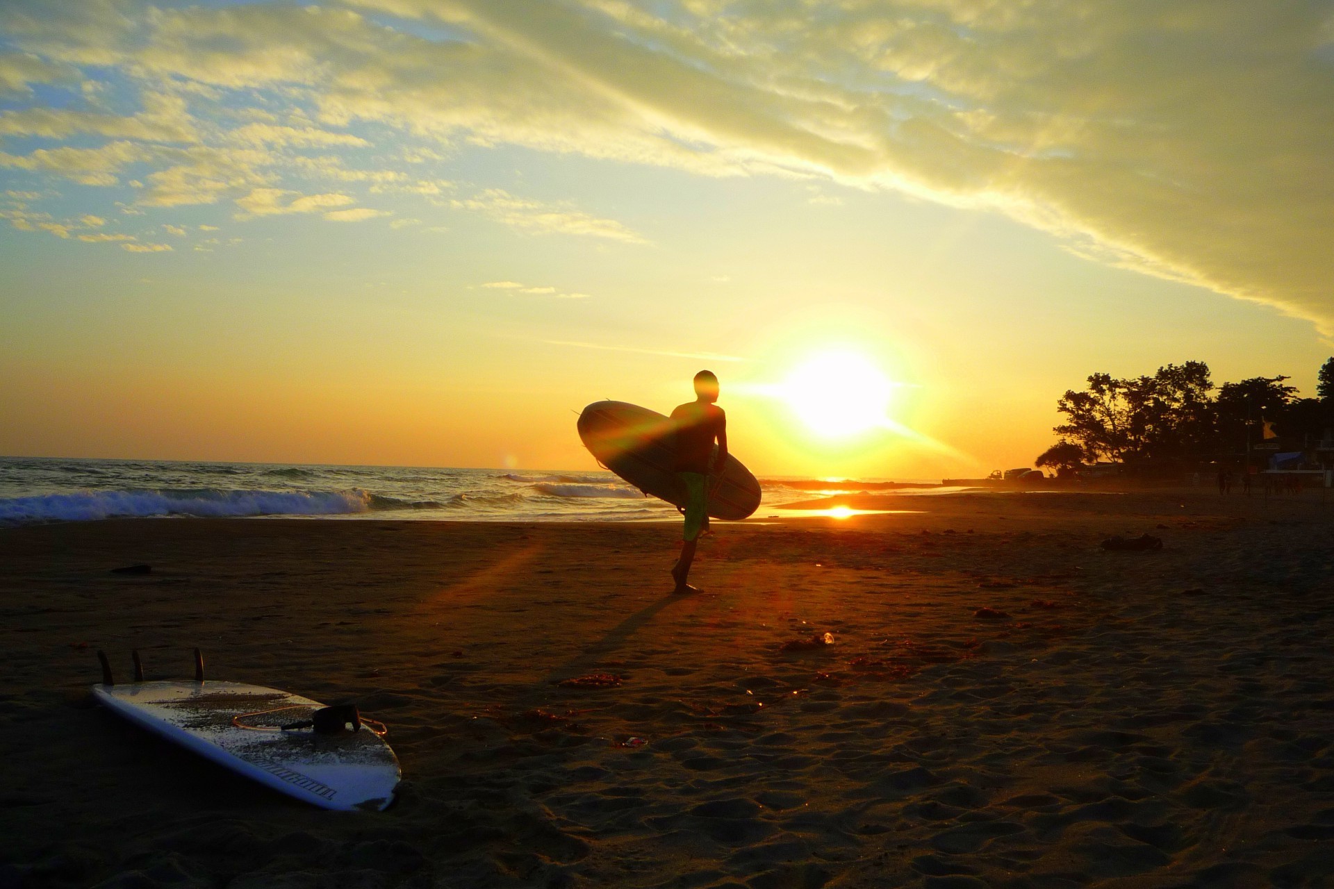 Il surfista porta la sua tavola da pattinaggio