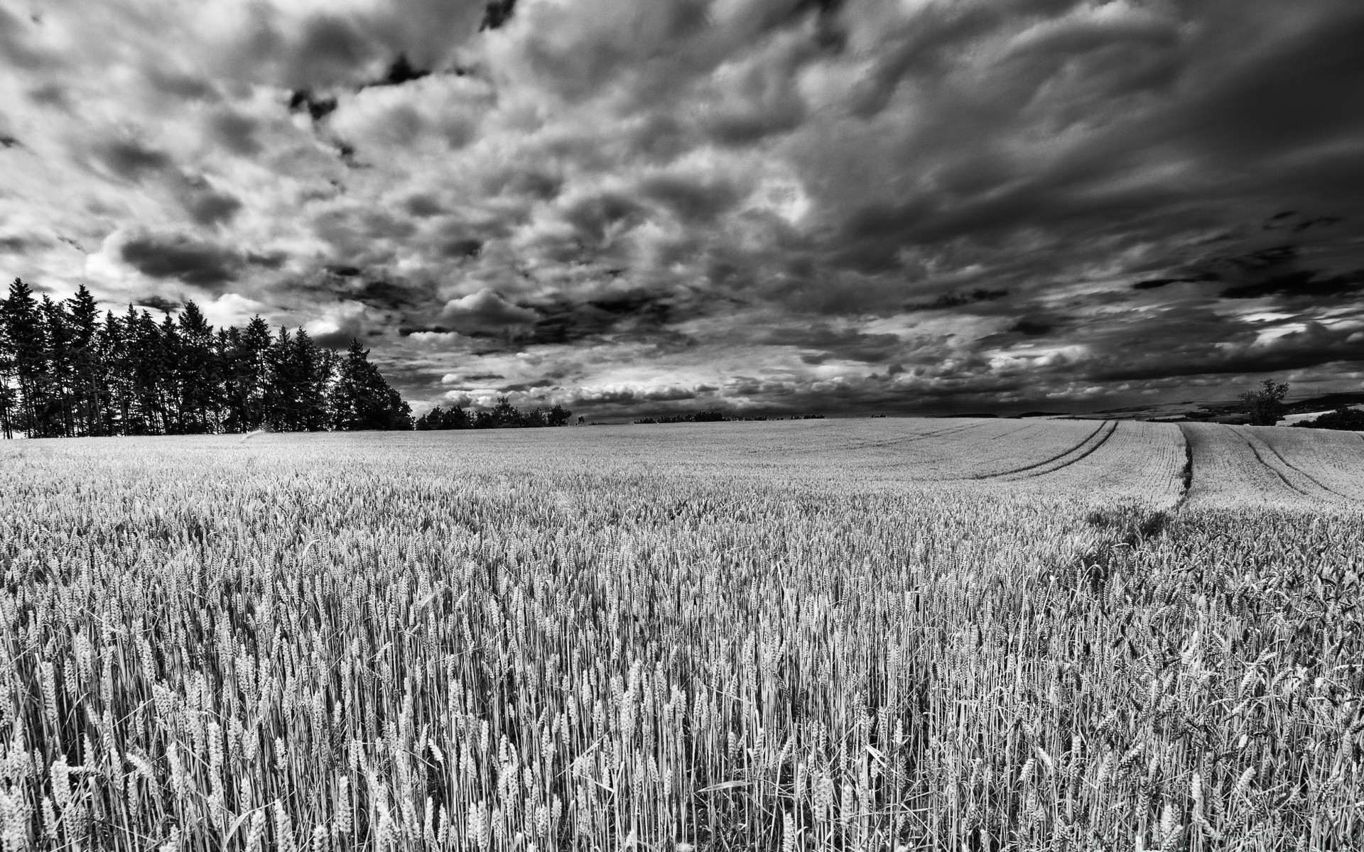 Sfondo bianco e nero del campo in tempo nuvoloso