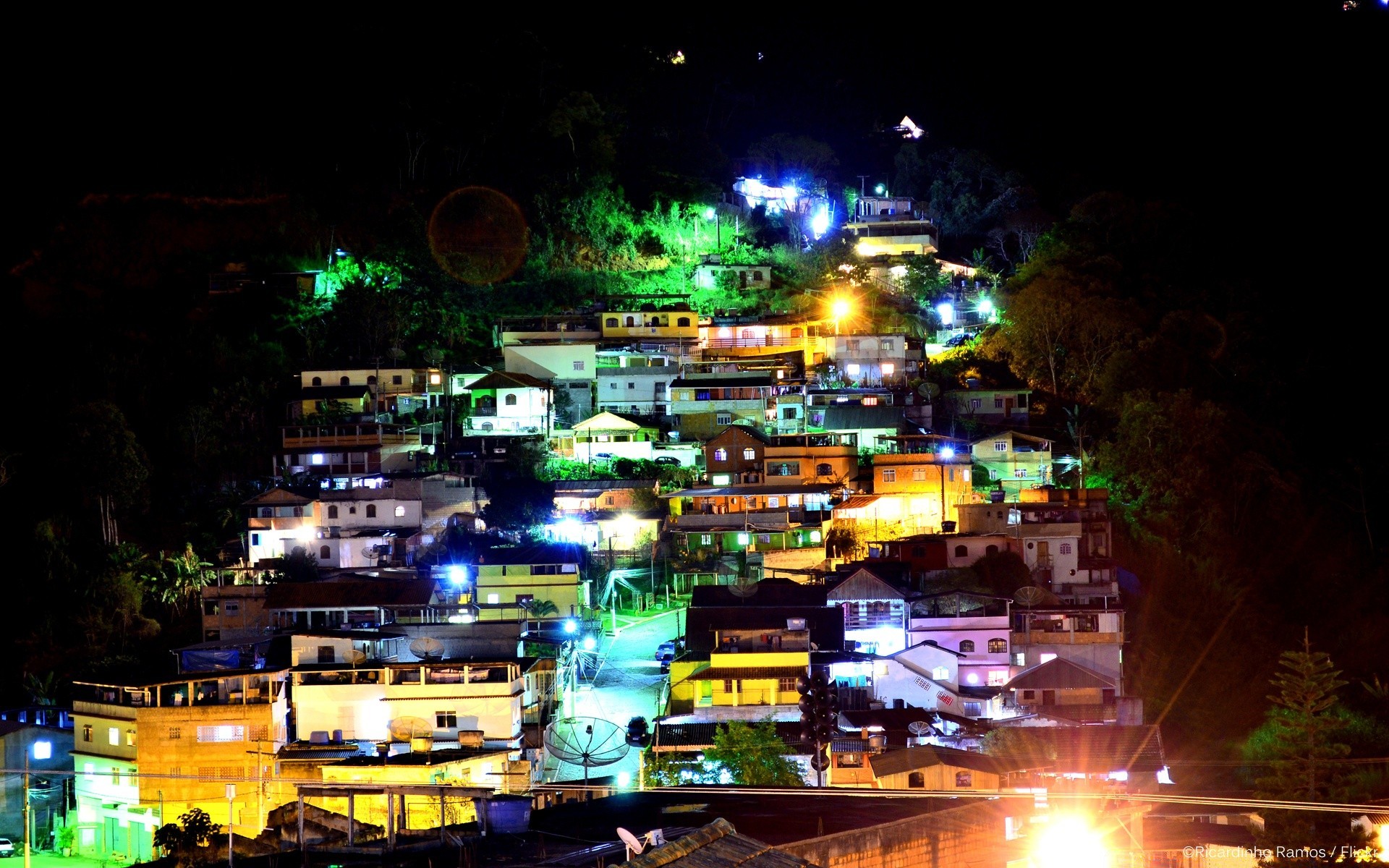 Lanterne colorate in una strada buia
