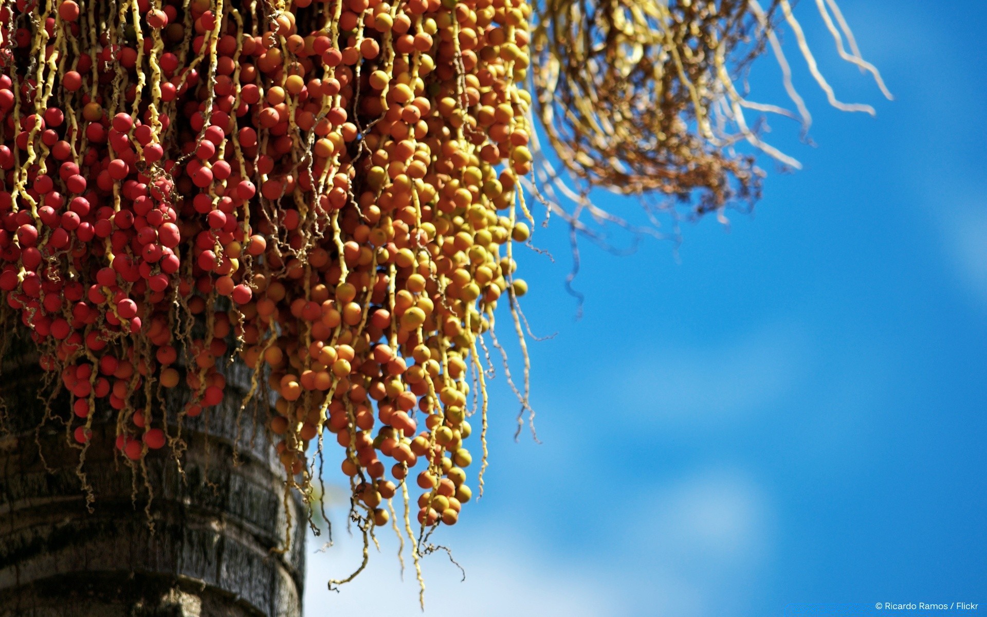 Frutti di frutta che pendono in ramoscelli contro il cielo