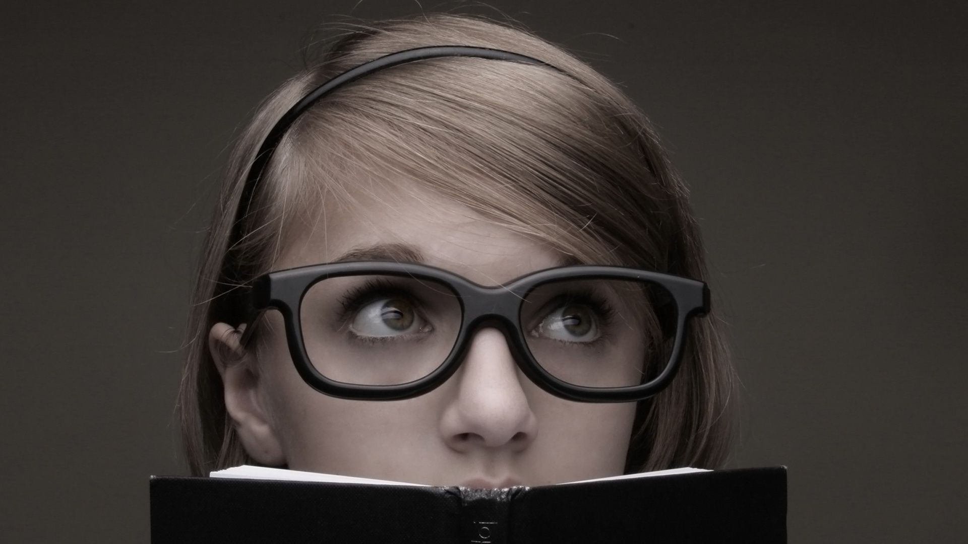 Foto di una ragazza con gli occhiali che tiene in mano un libro