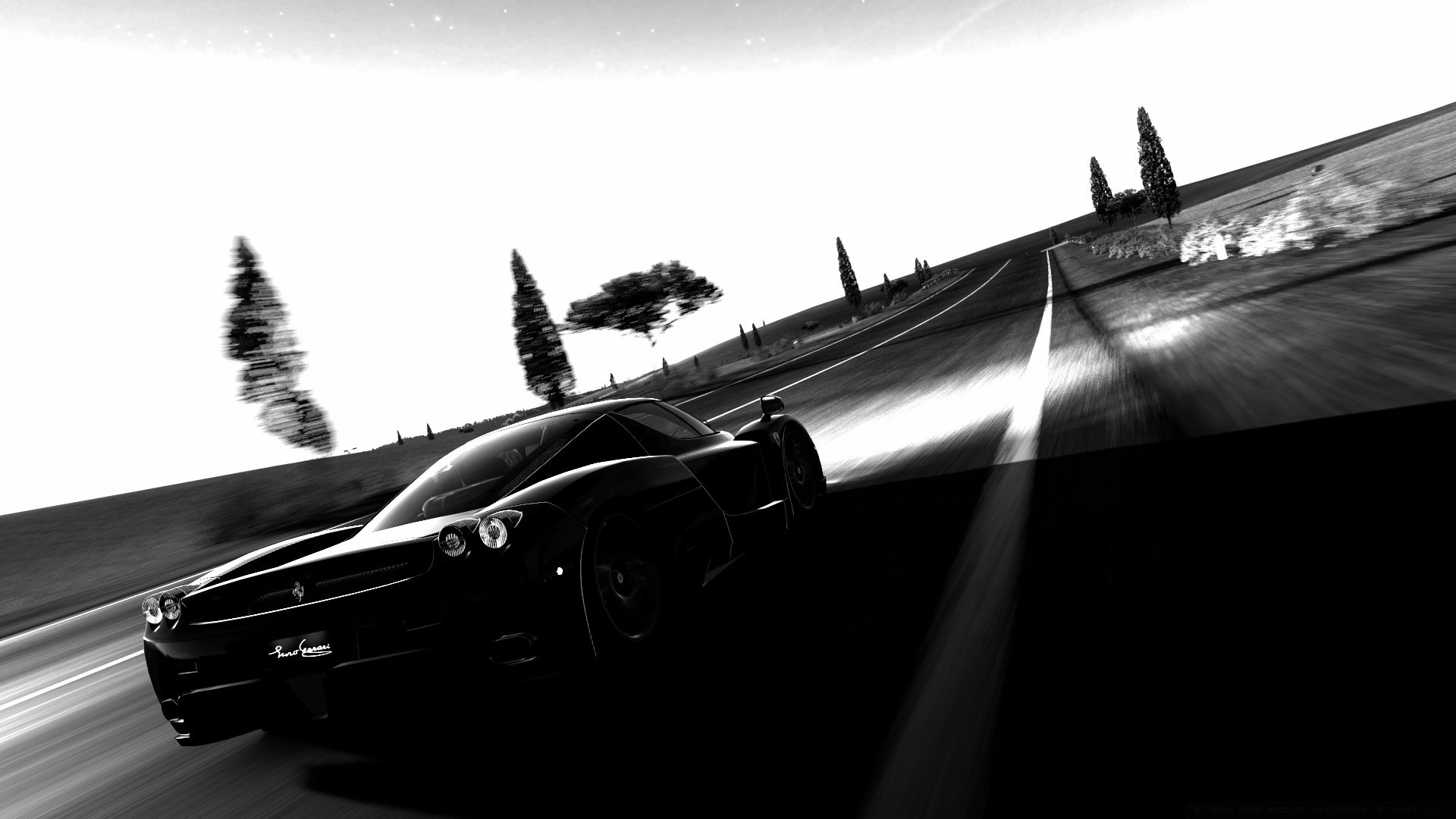 Auto sulla strada nei toni del grigio
