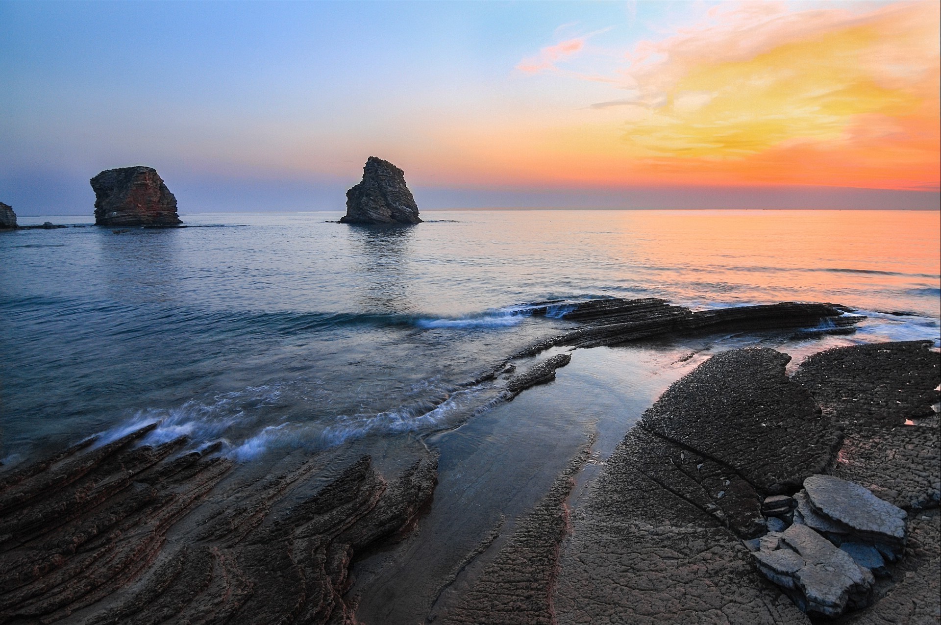 Rocce vicino al mare. Sfondi tramonto