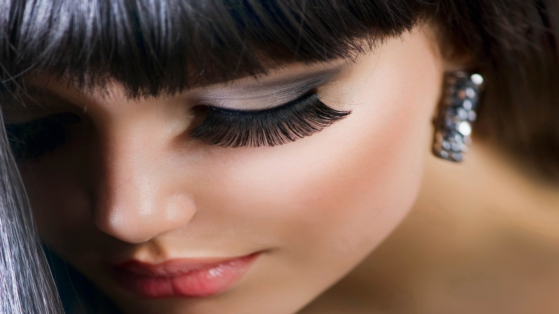 Occhi azzurri felici vicino a un ramoscello con fiori rosa