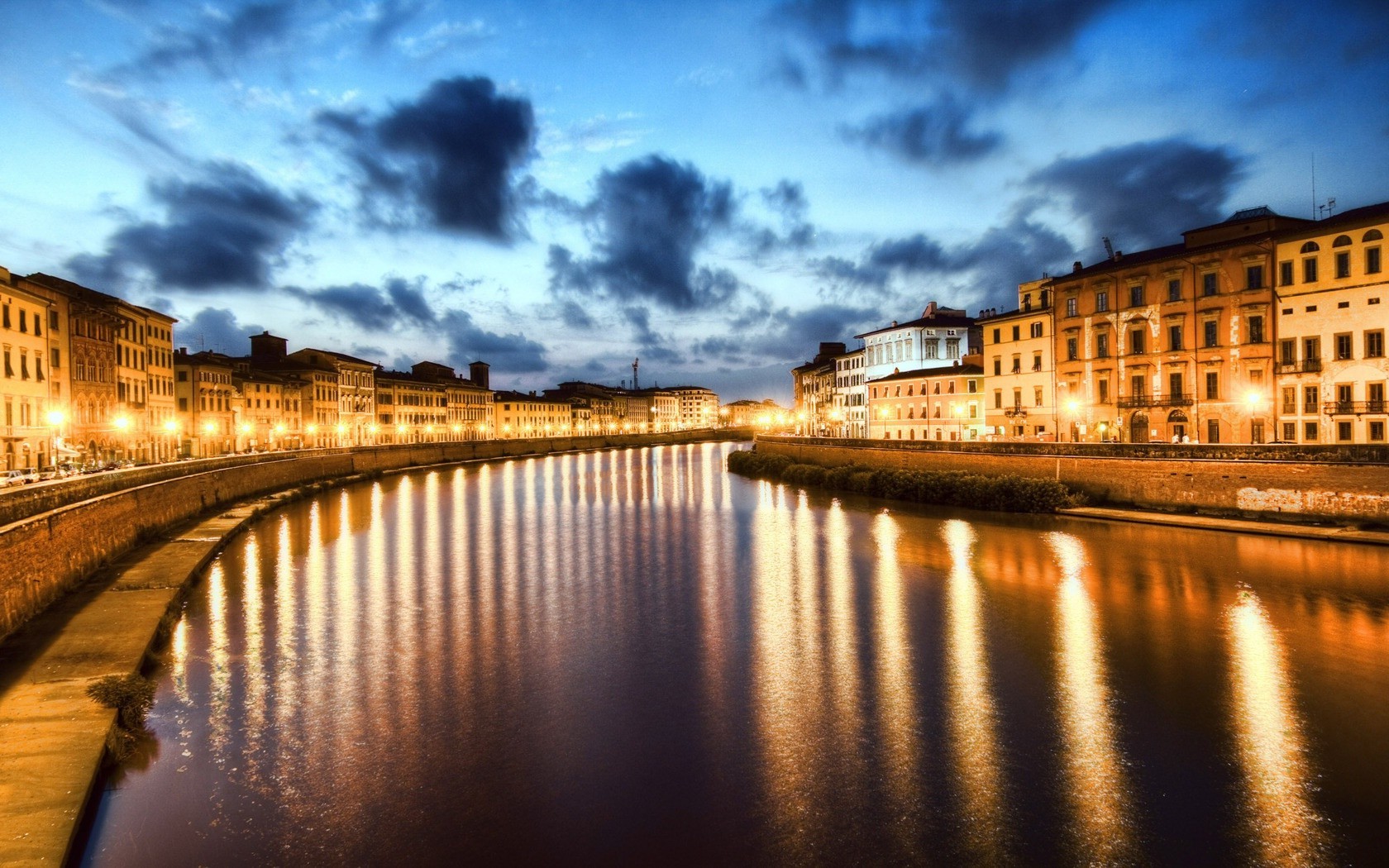 Una città in america la sera è evidenziata in modo coloratoUna città in America la sera è evidenziata in modo colorato