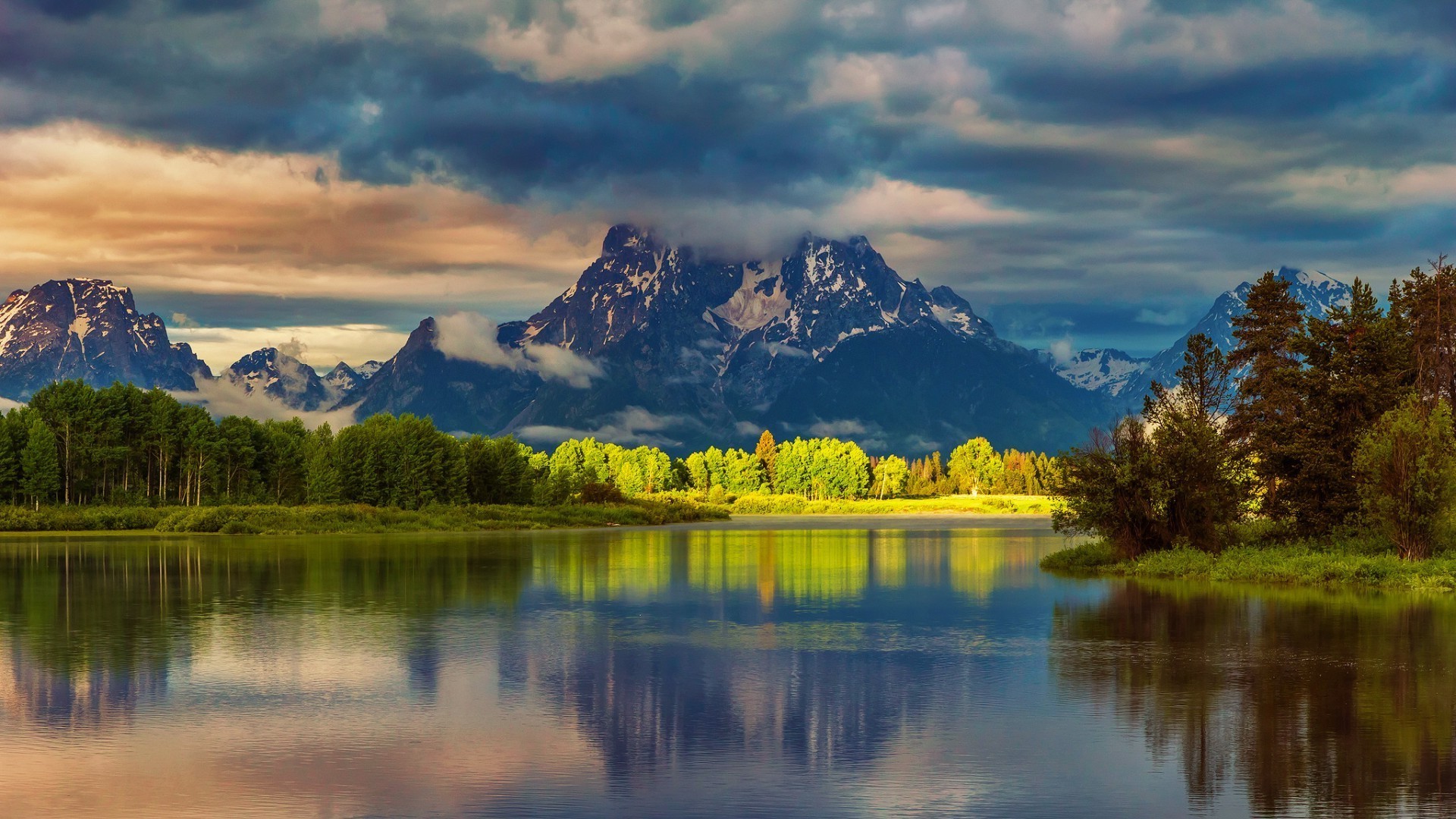 Paesaggio delle montagne e riflessione nello stagno