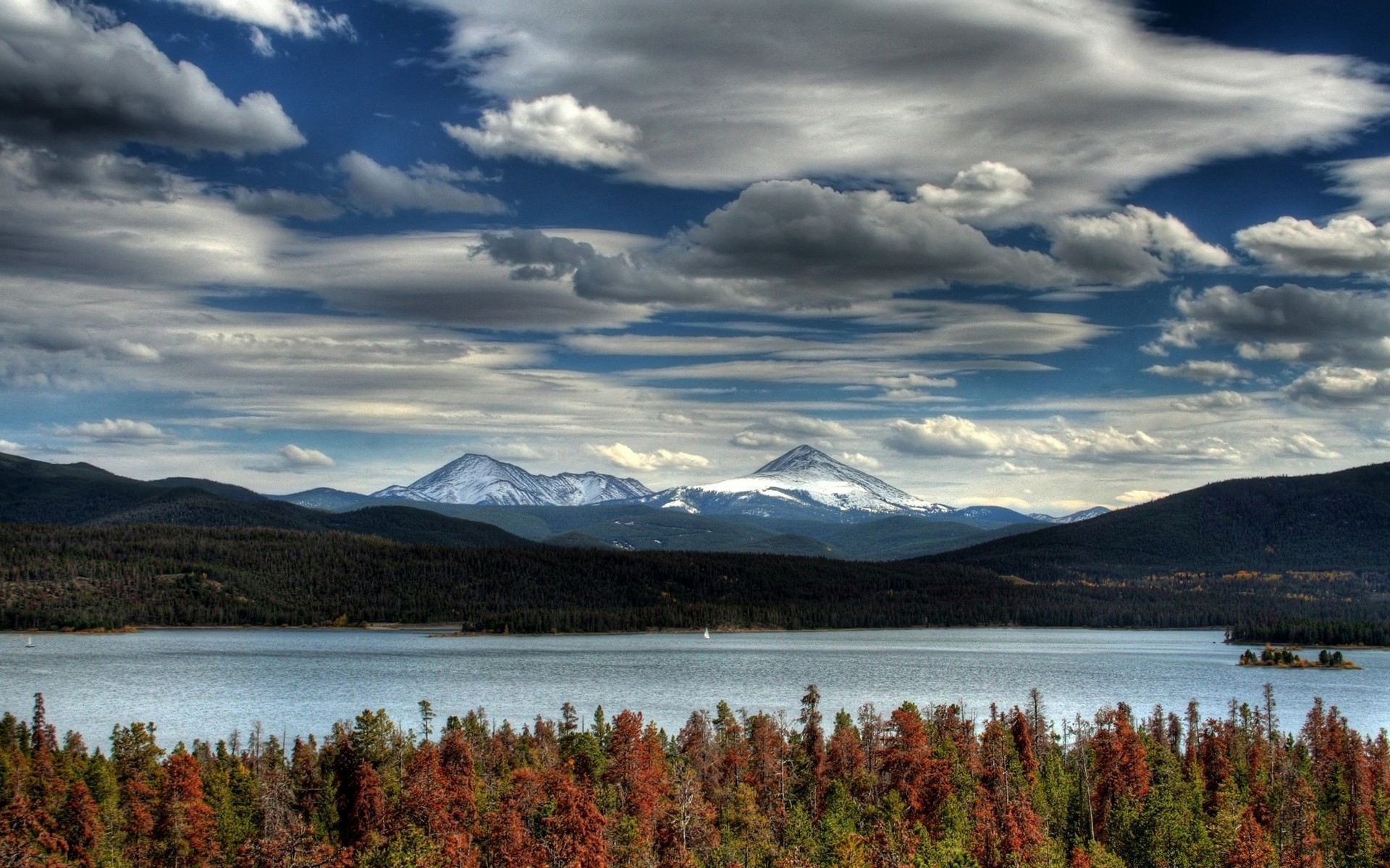 Paesaggio autunnale. Alberi e laghi