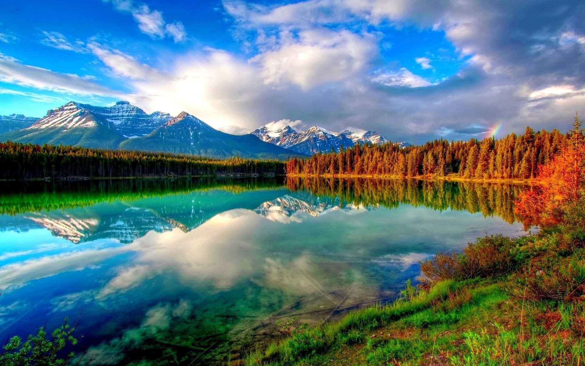 Paesaggio autunnale di alberi che si riflettono nel lago