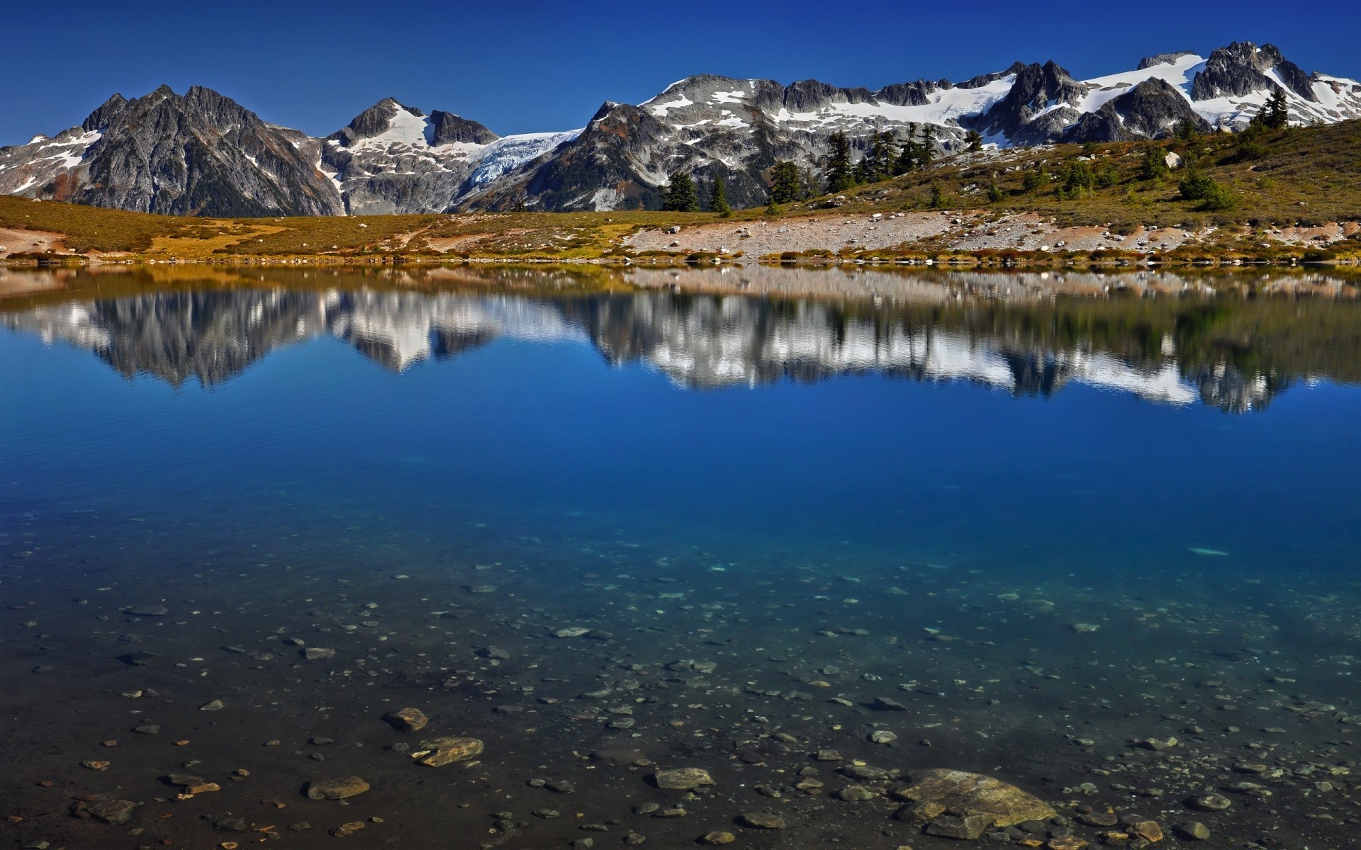 Bellissimo paesaggio. Le montagne si riflettono nel lago