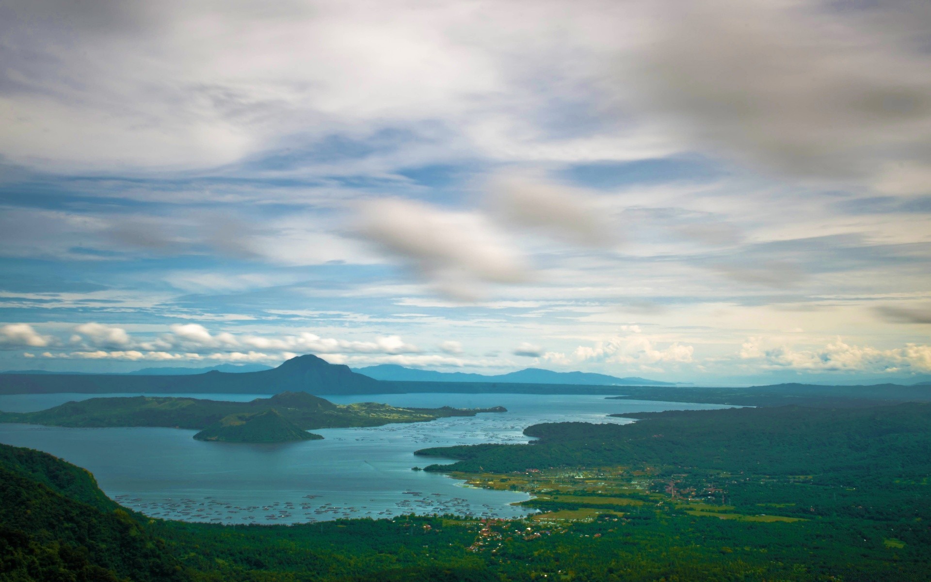 Nuvole sopra il lago blu in una sera d'estate