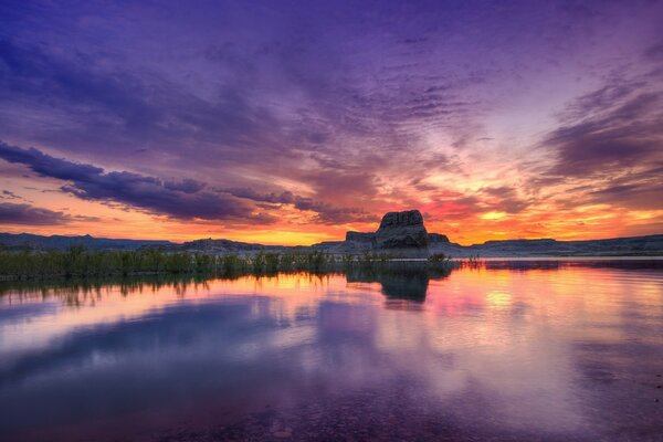 Riflesso del cielo al tramonto nell'acqua del Lago