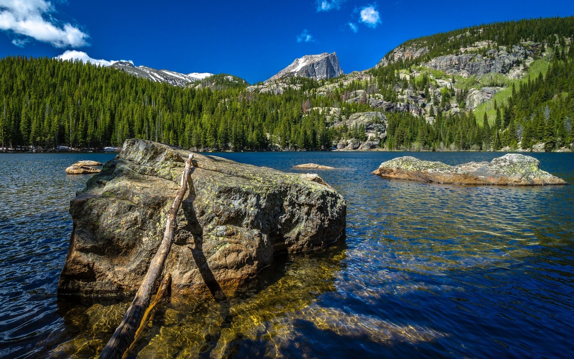Lago nella gola di montagna vicino al paesaggio dell'acqua