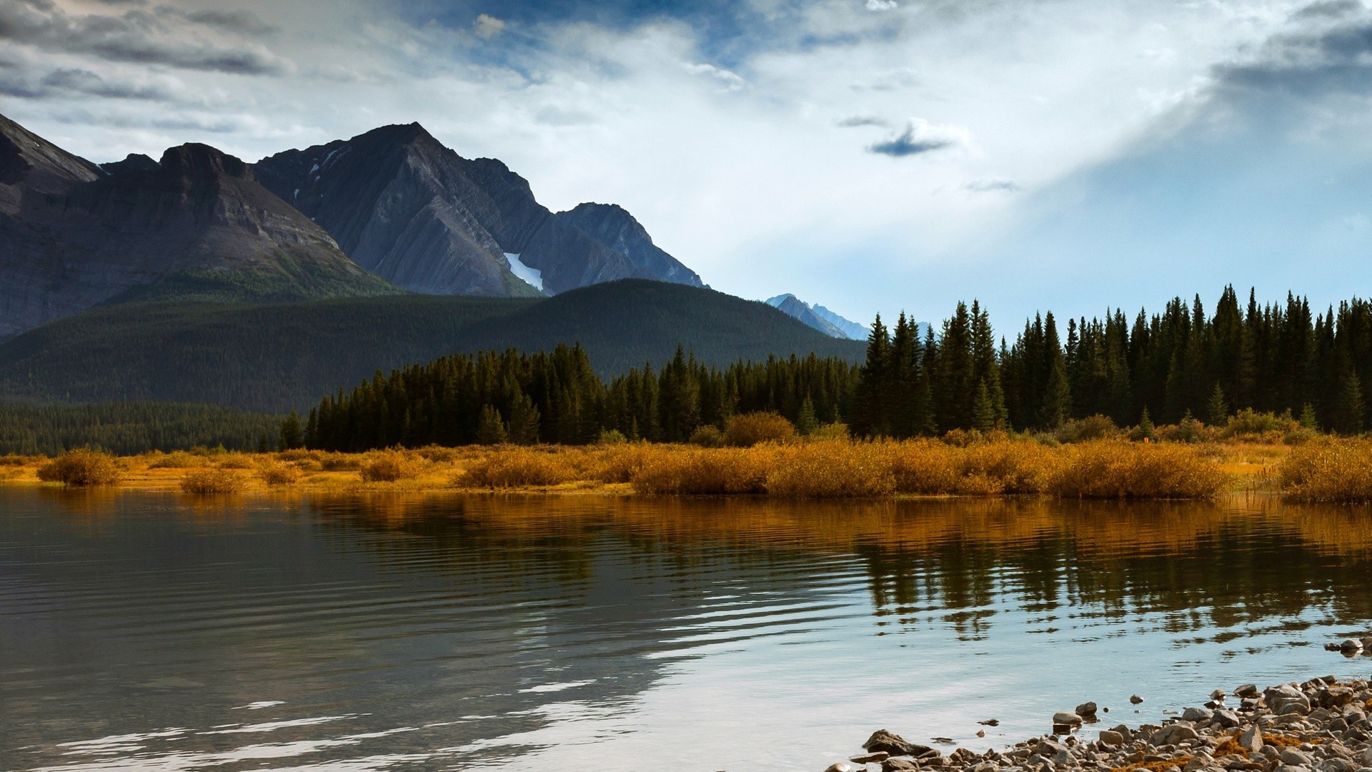 Paesaggio pittoresco. montagne autunnali e lago con forestaPaesaggio pittoresco. Montagne autunnali e lago con foresta