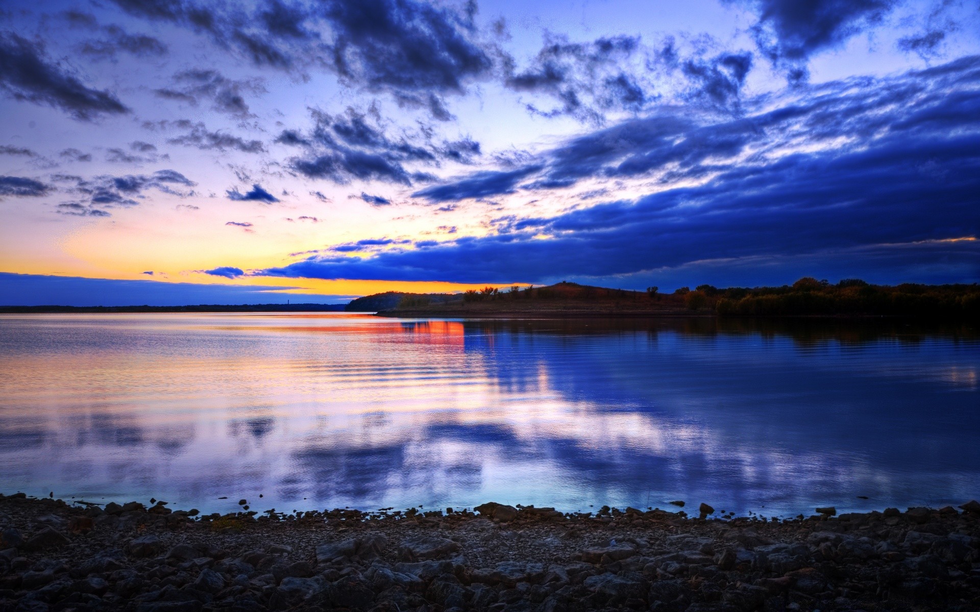 Bellissimo paesaggio del tramonto sulla riva del fiume