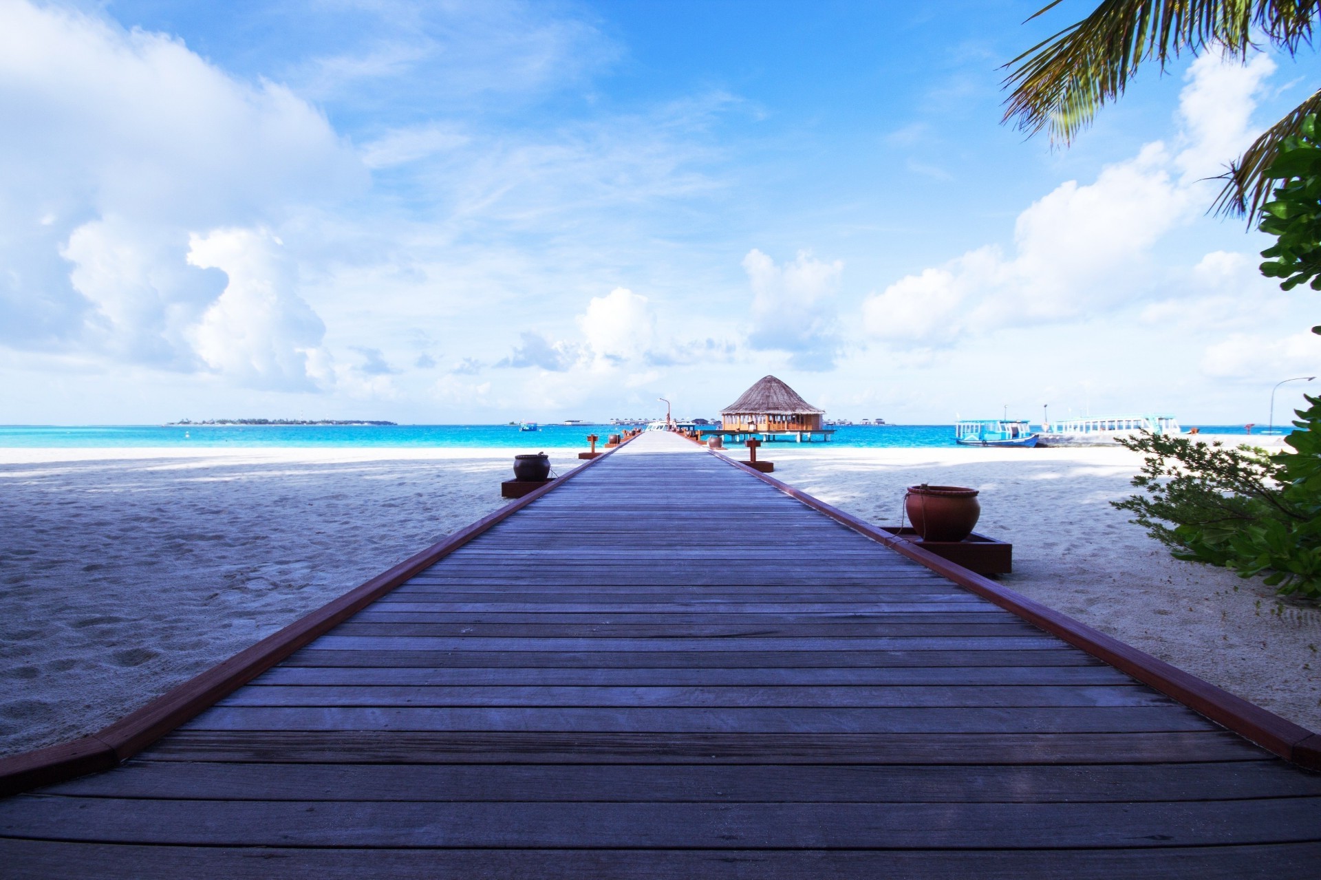 Piattaforma di legno sulla spiaggia che conduce al mare