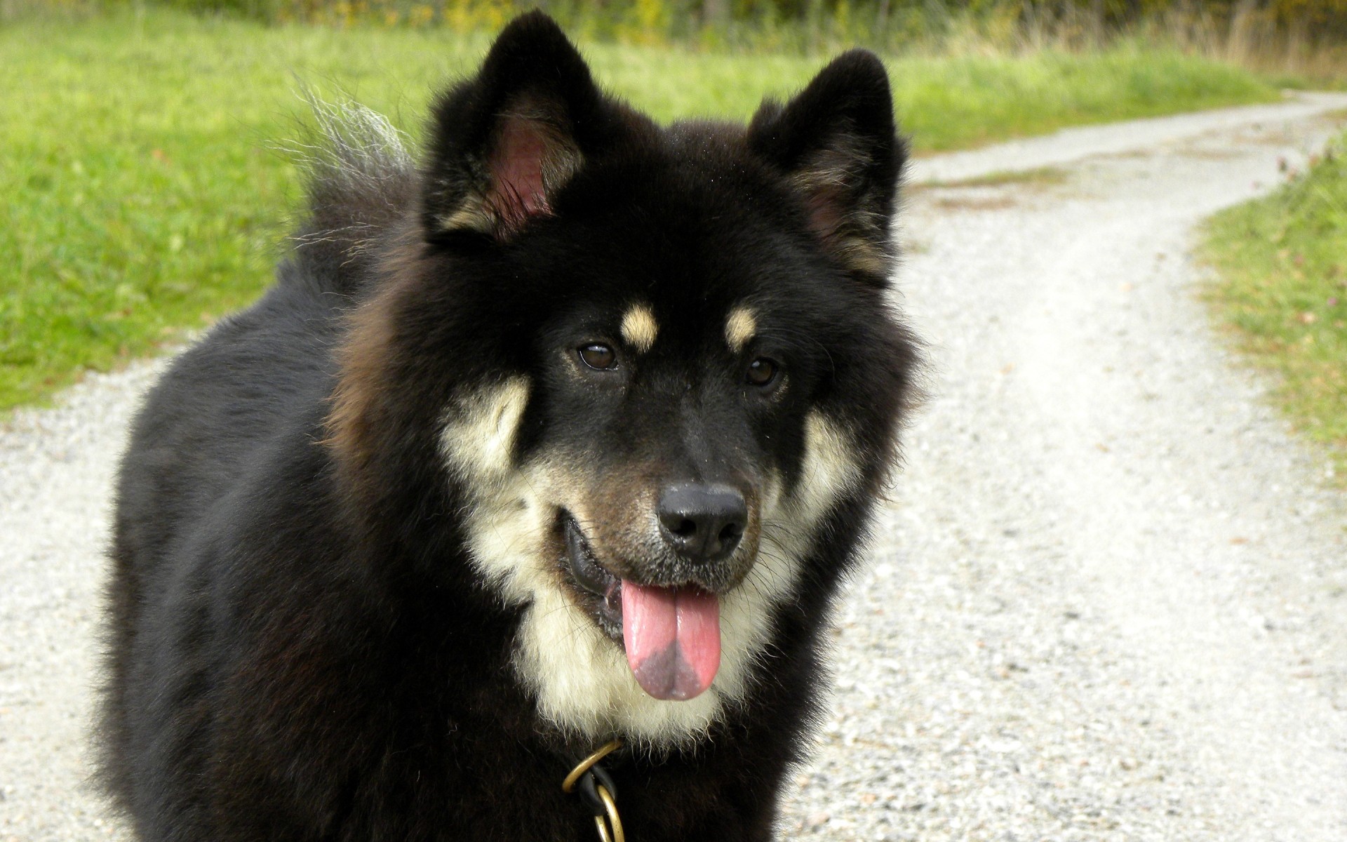Cane da pastore con uno sguardo serio e la lingua fuori