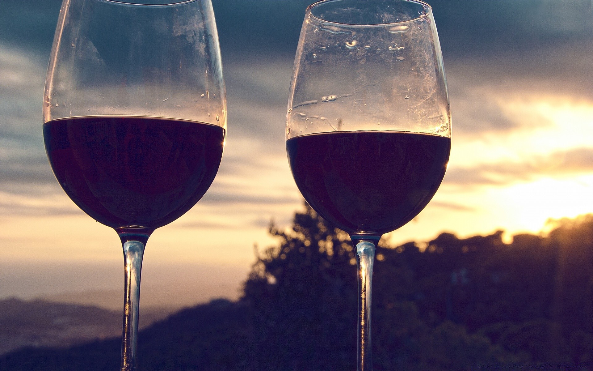 Versando vino rosso con un bicchiere di vino trasparente su uno sfondo di luce