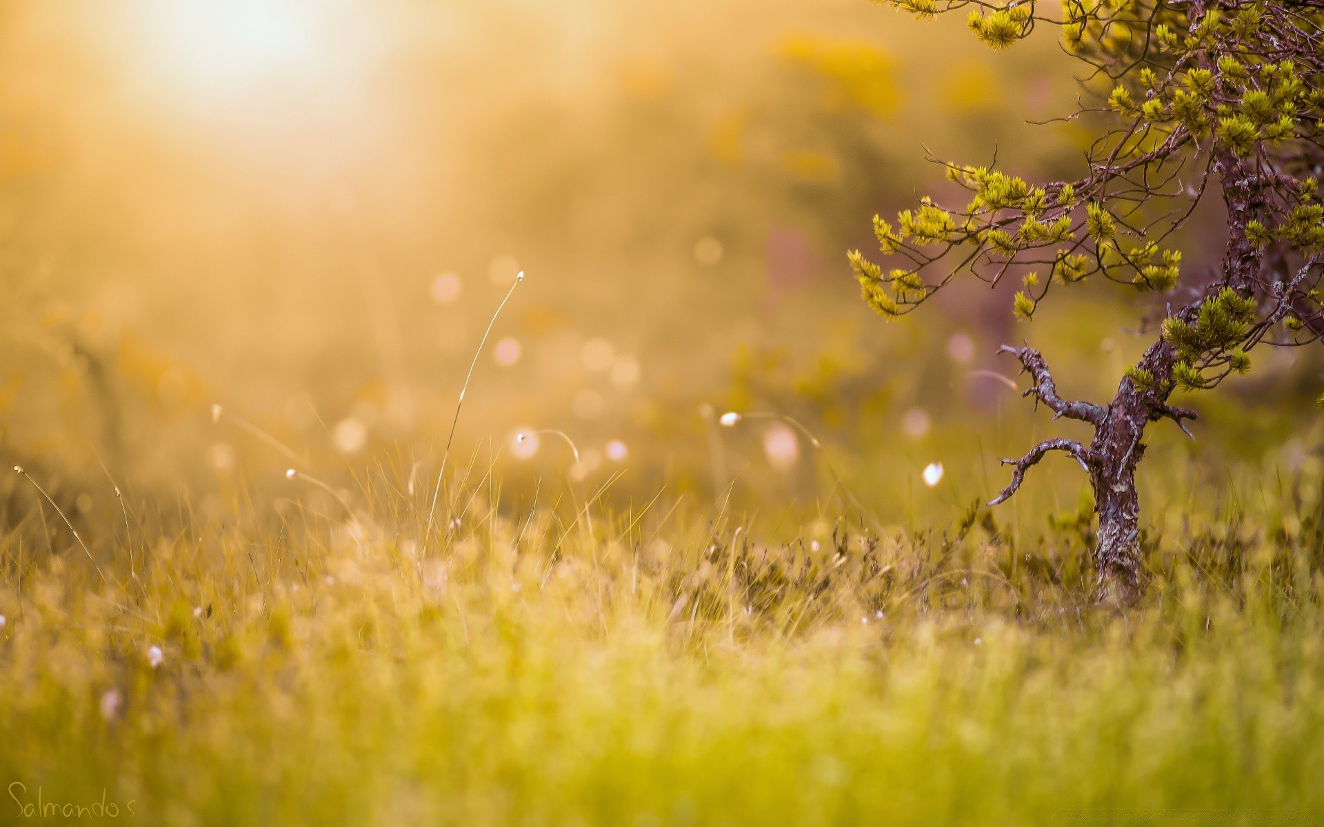 Campo nei raggi luminosi del sole nascente sul cielo nuvoloso