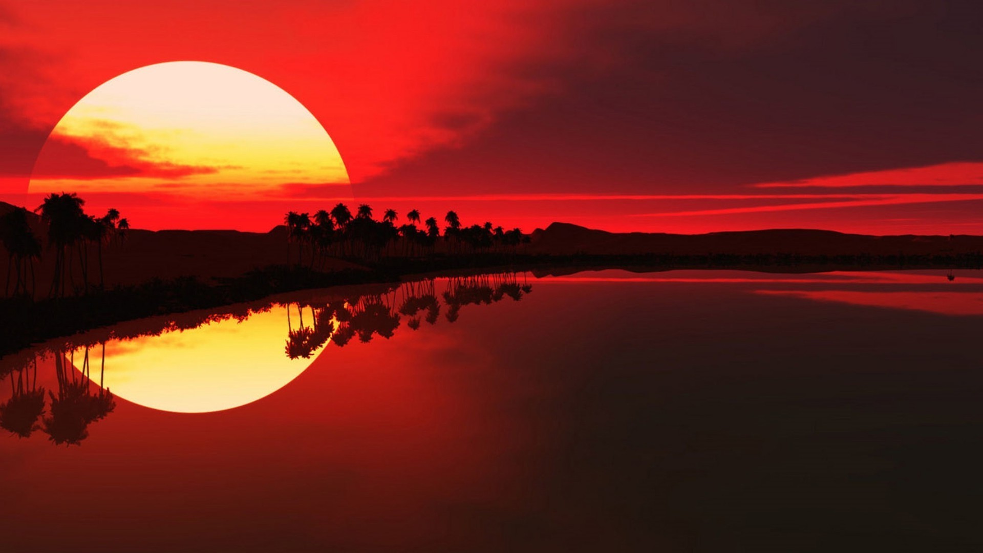 Bellissimo tramonto con il riflesso del sole sull'acqua