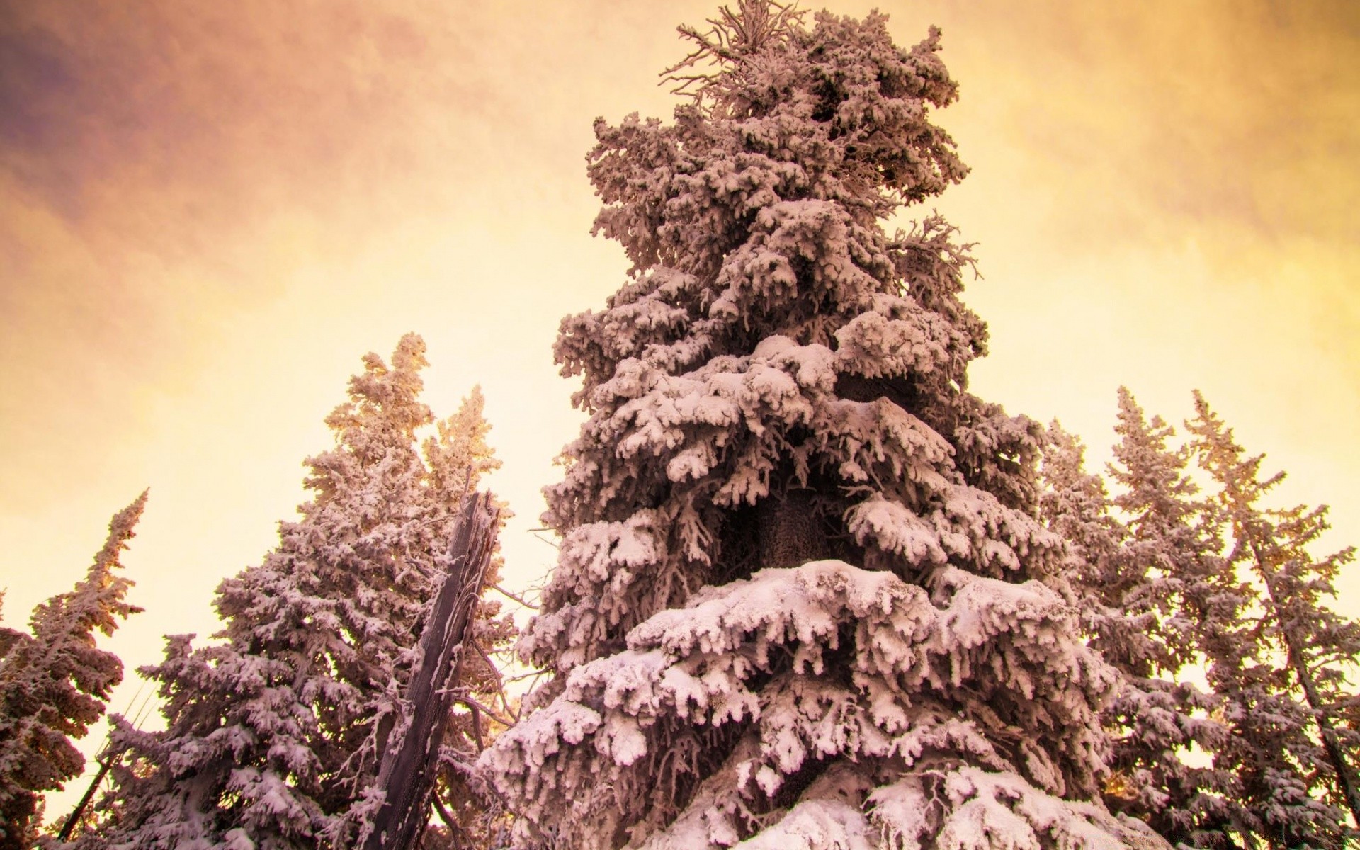 Immagine di un inverno freddo e gelido sugli alberi di Natale