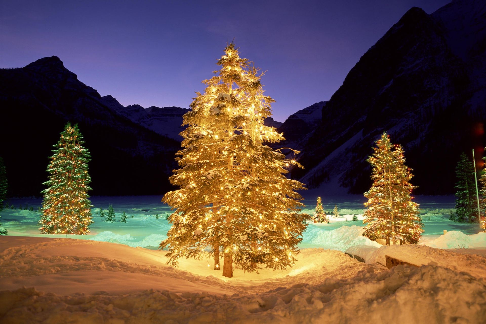 Foto di Capodanno. Albero di Natale, cervi, Babbo Natale