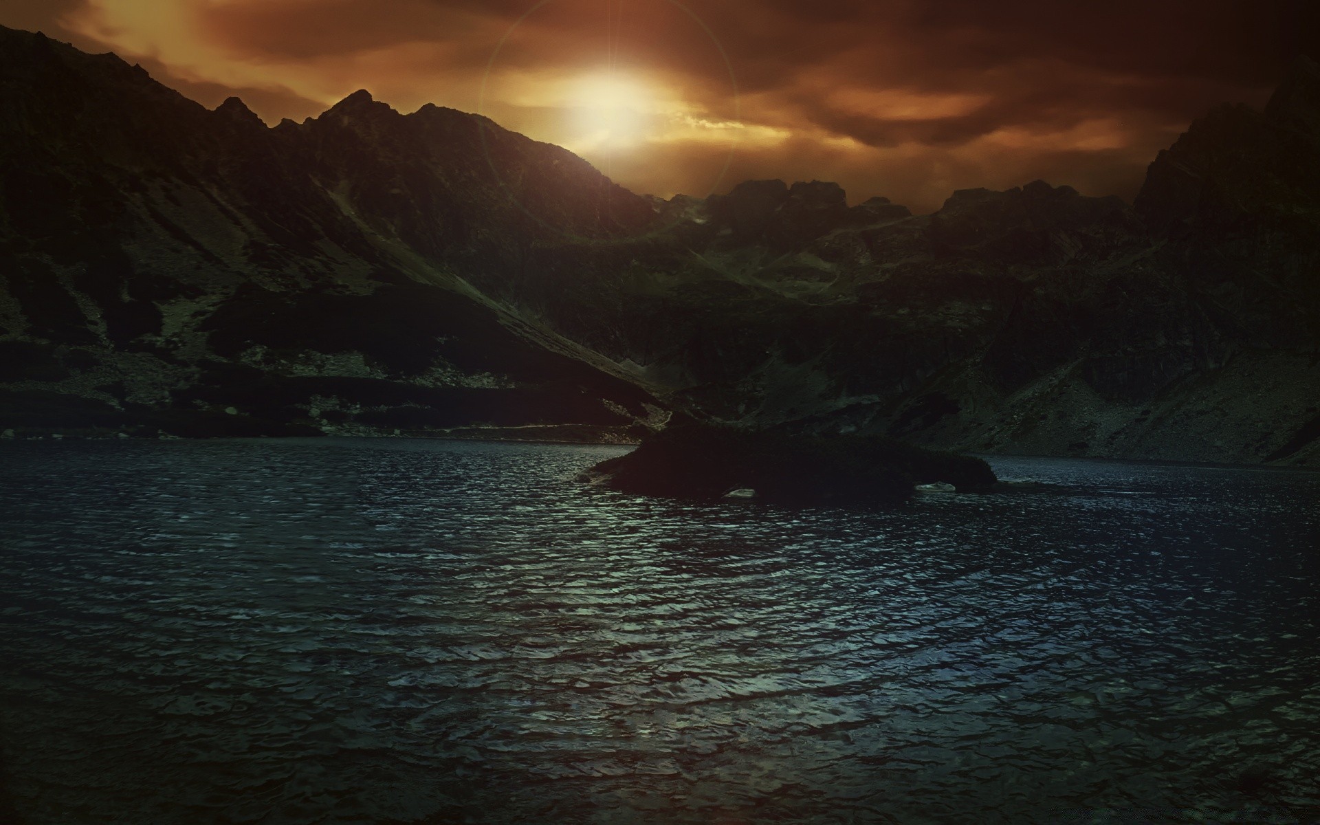 Tramonto della montagna e chiaro di luna