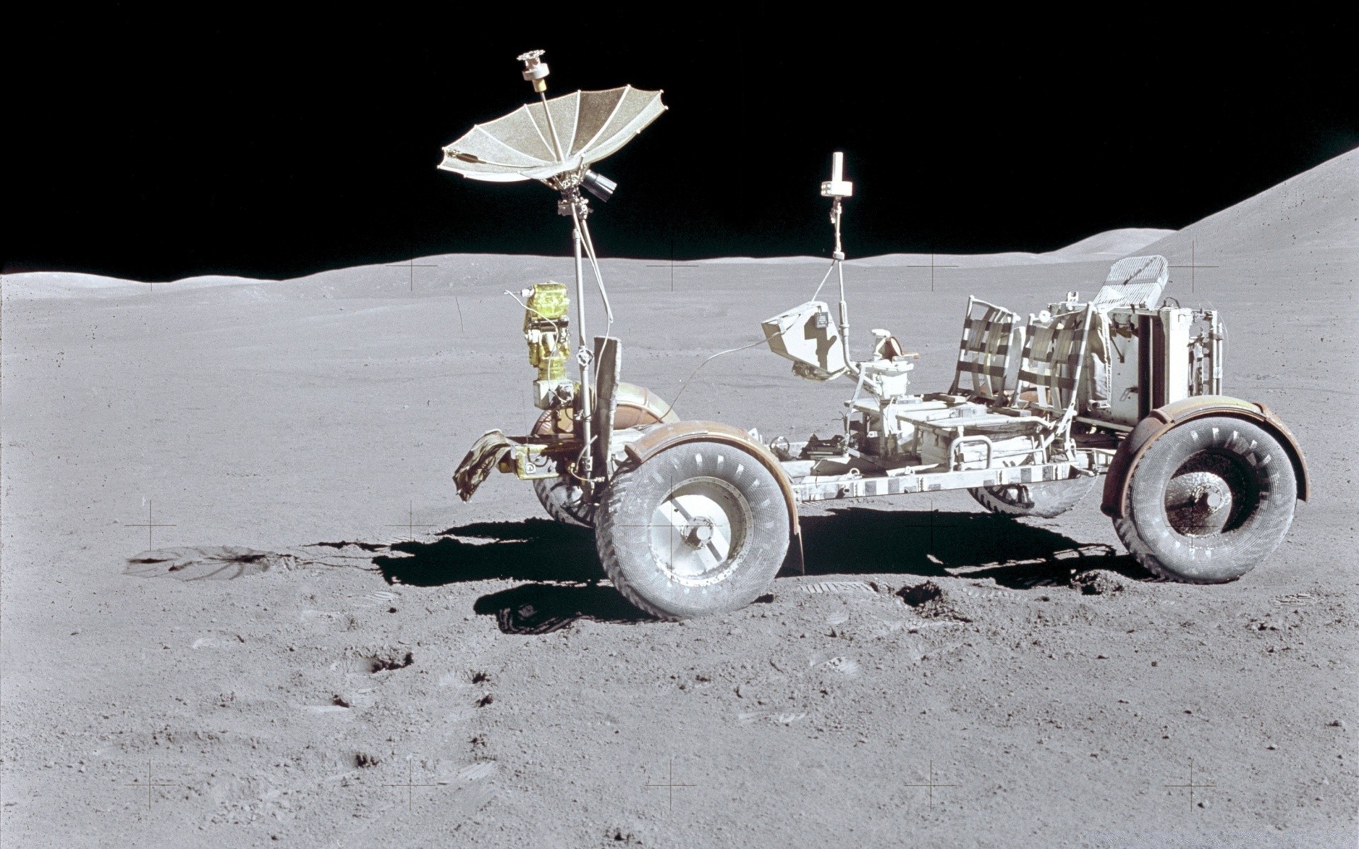 Rover lunare sulla luna sullo sfondo del cosmo nero