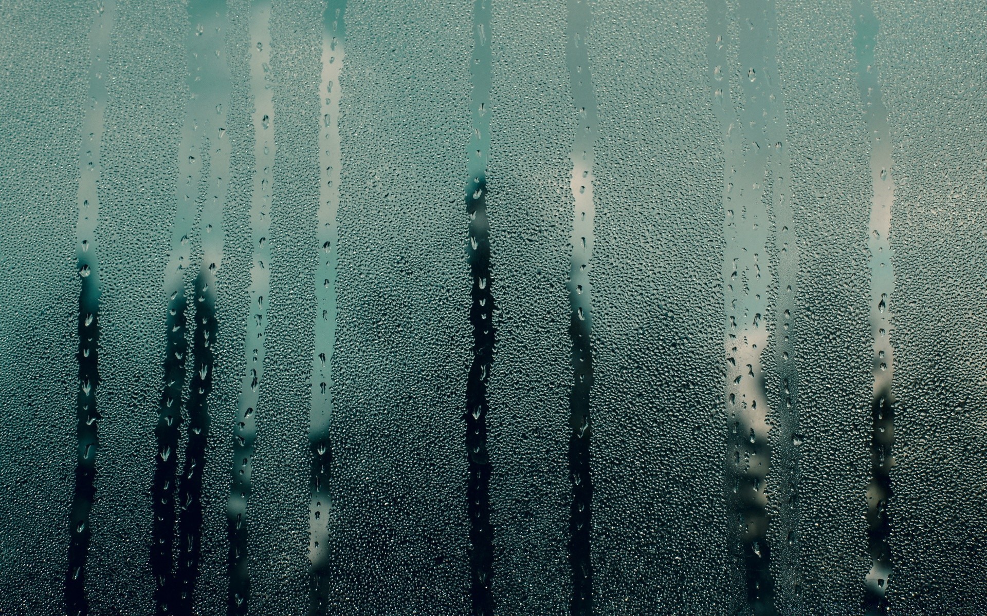 Superficie dipinta con foglie autunnali in gocce d'acqua