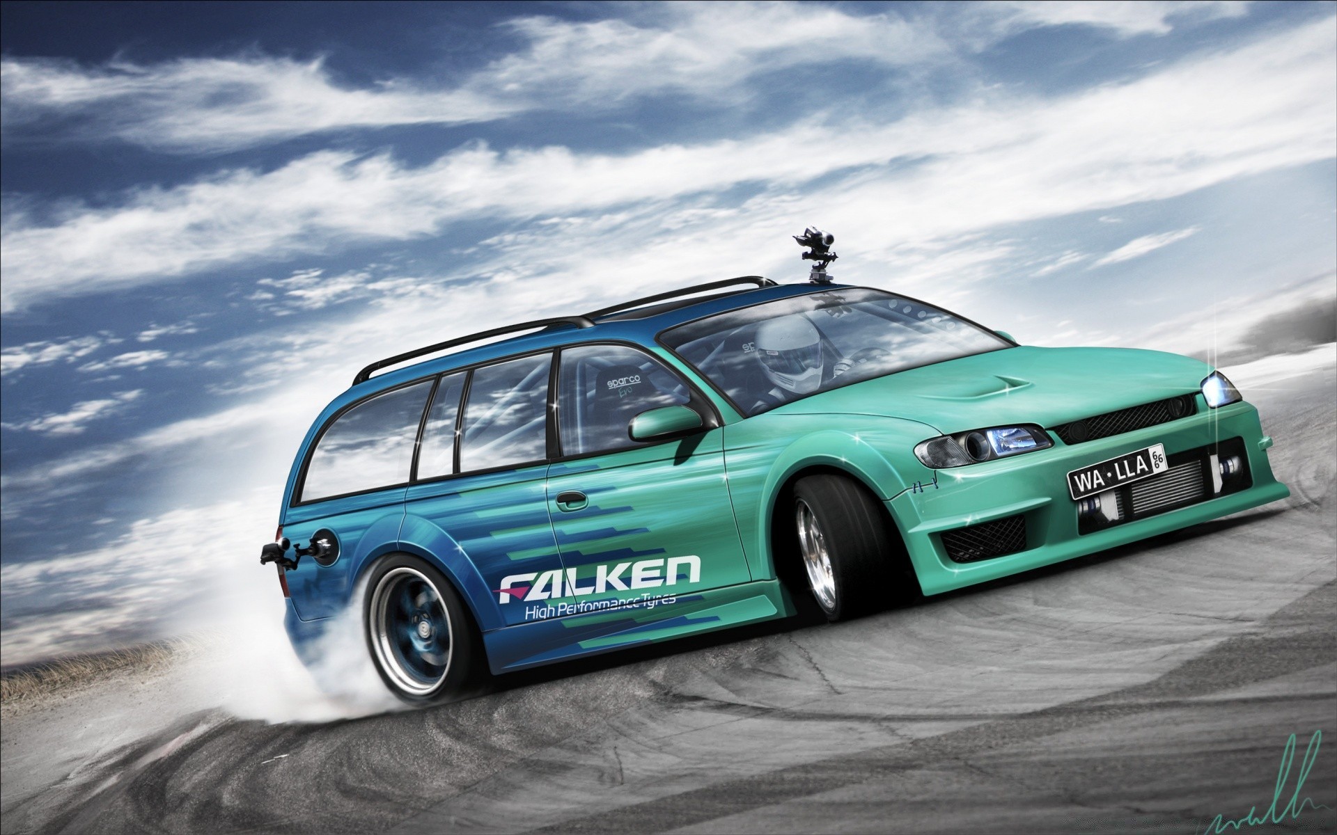 Macchina da corsa sportiva nera sullo sfondo di edifici alti