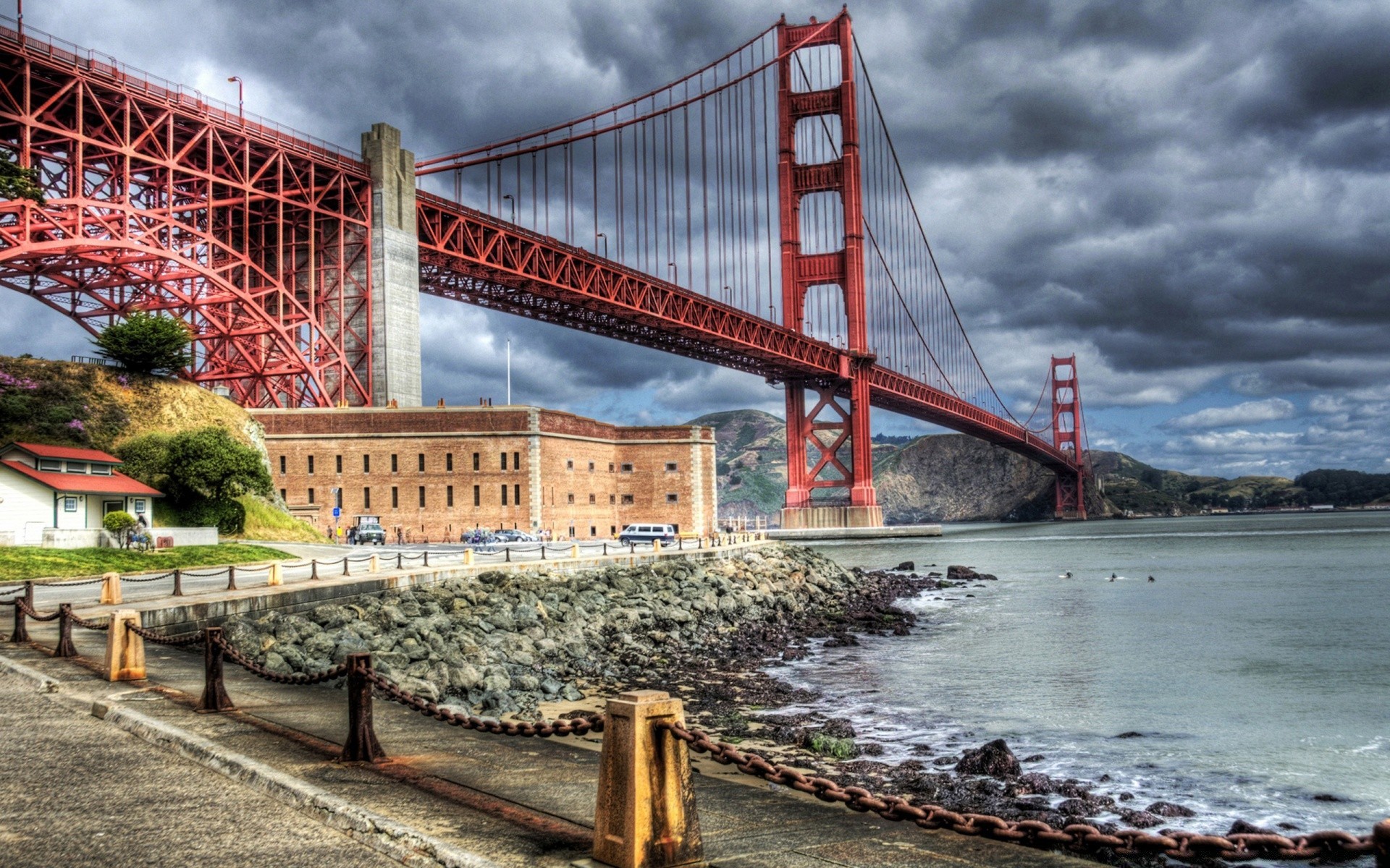 Bellissimo ponte sul fiume con tempo nuvoloso