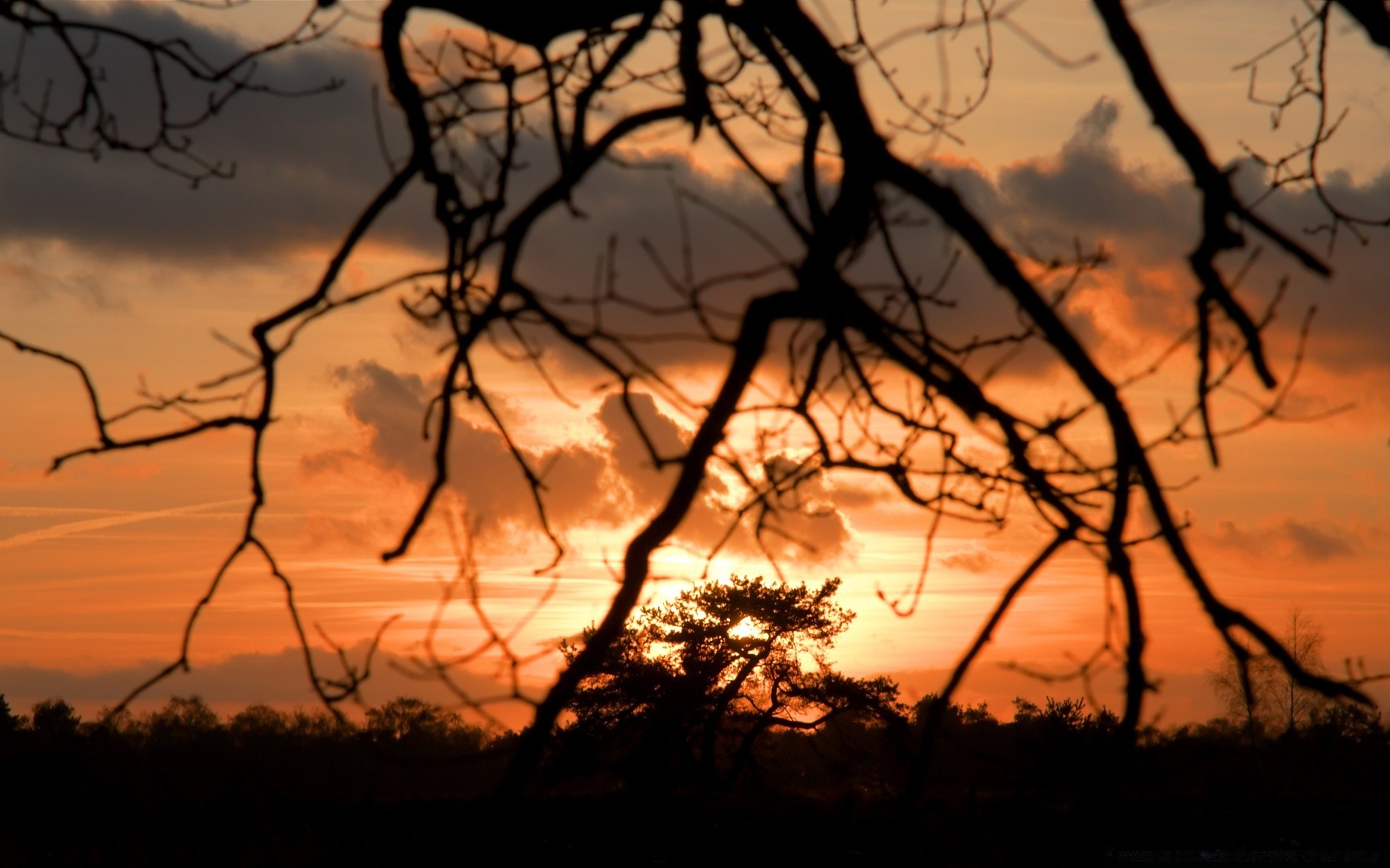 Vista del tramonto attraverso un ramo di un albero