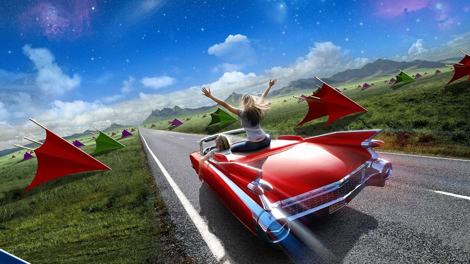 Elicottero e auto nel parcheggio, dietro di loro alberi ed erba
