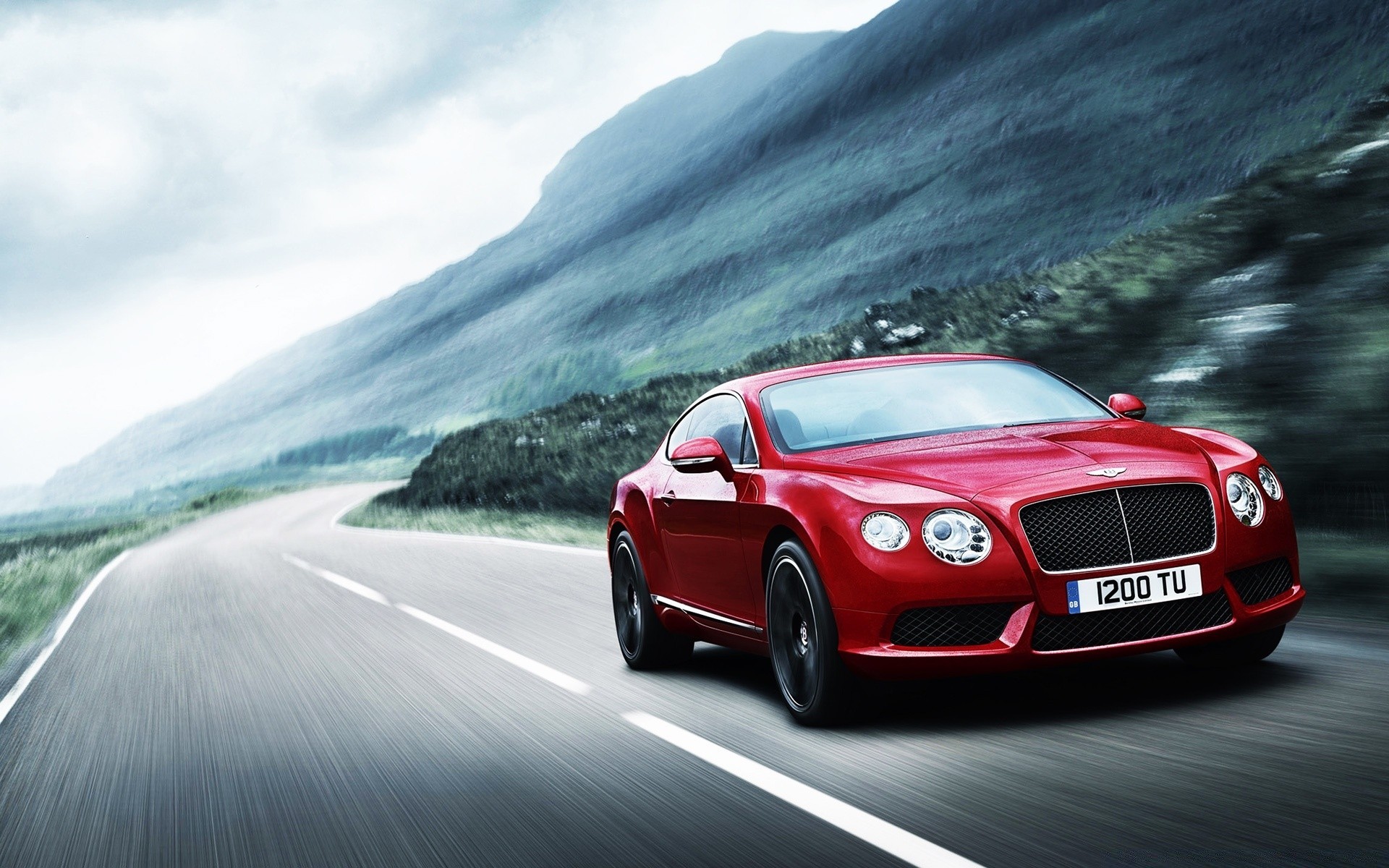 Foto di auto sportive Bentley sullo sfondo di strade e montagne