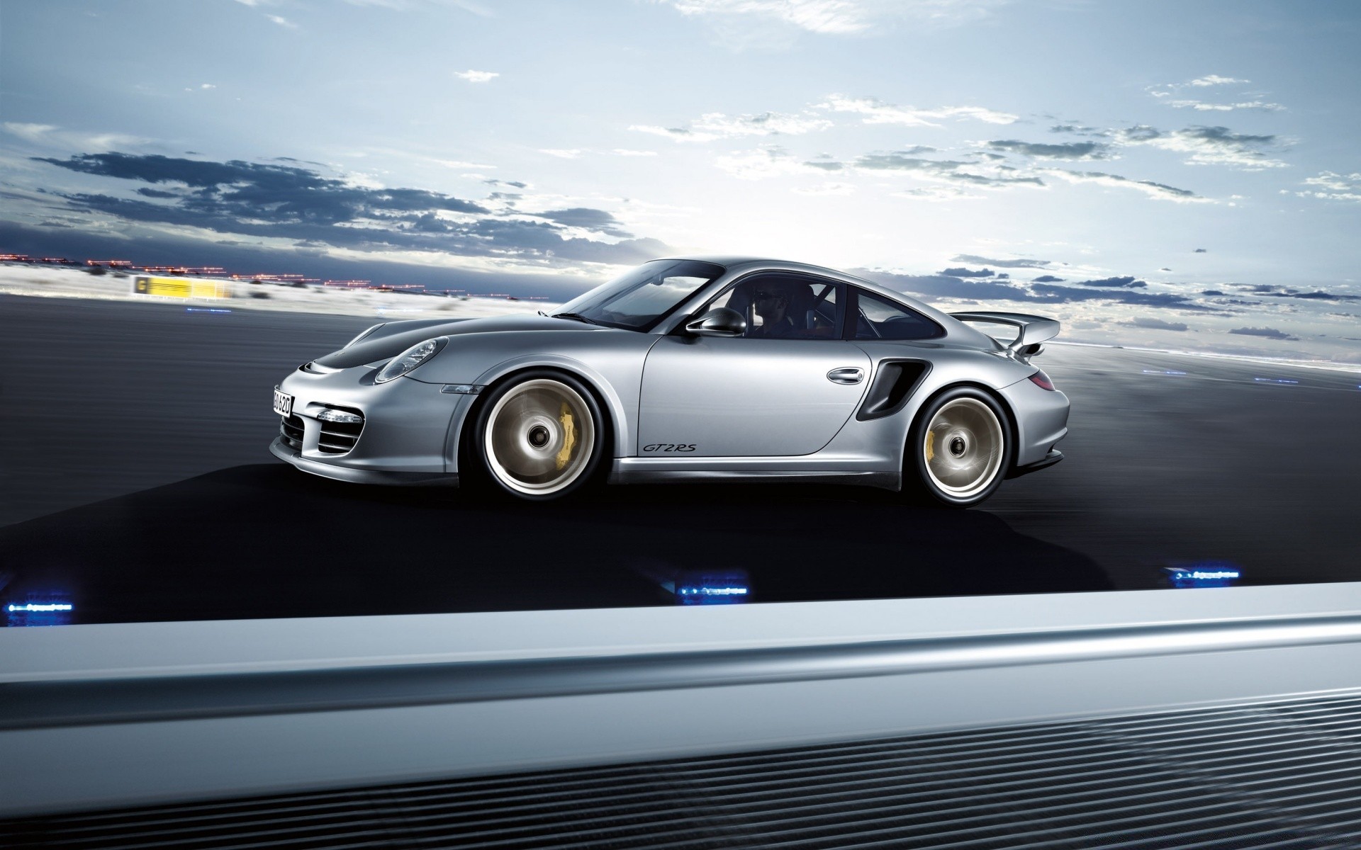 Un motociclista guida lungo la strada. ci sono macchine sul ciglio della stradaUn motociclista guida lungo la strada. ci sono macchine sul ciglio della strada