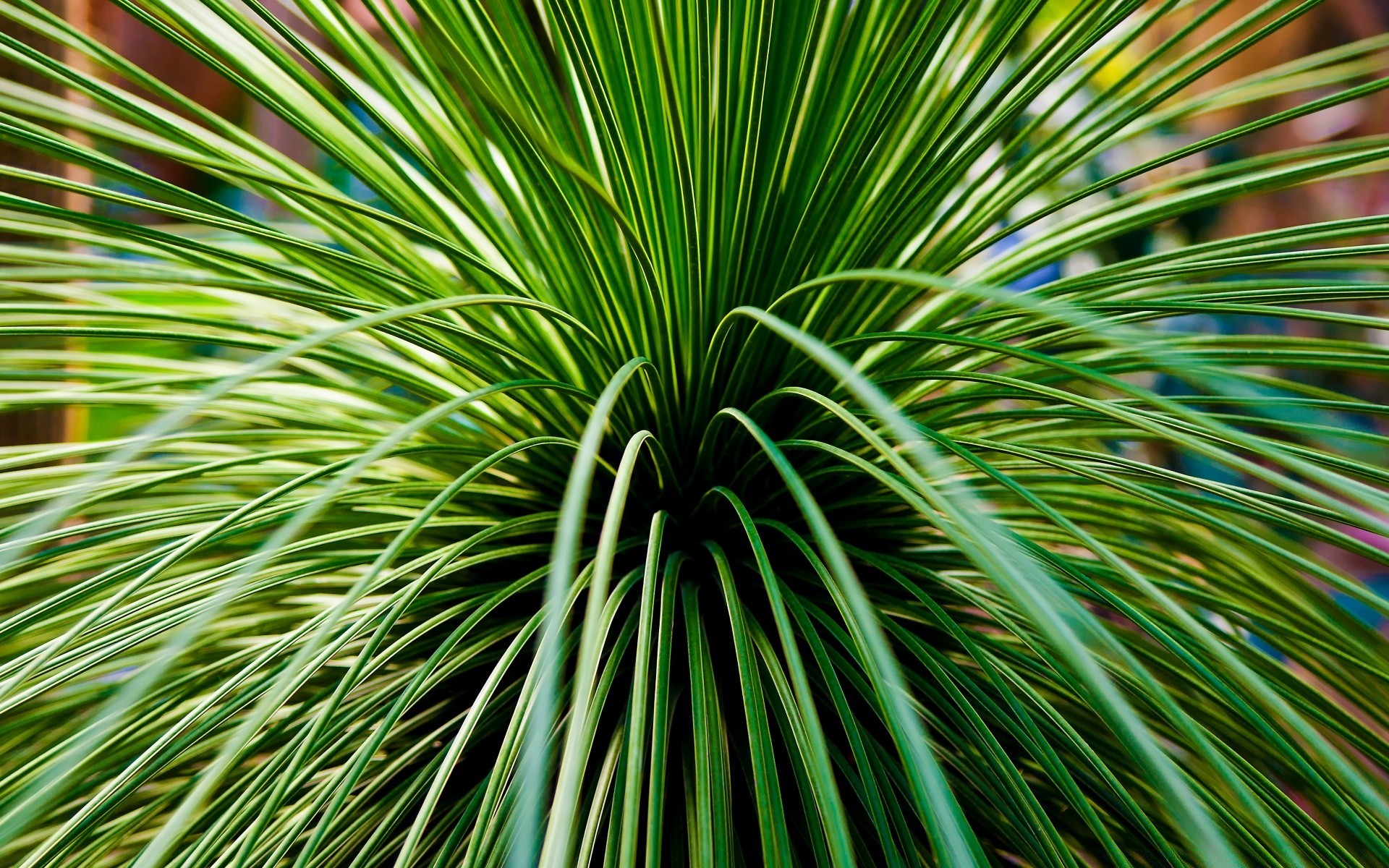 Pianta tropicale con foglie sottili sotto i raggi del sole