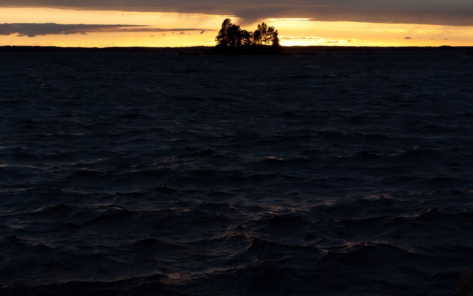 Mare scuro pre-tramonto con alberi
