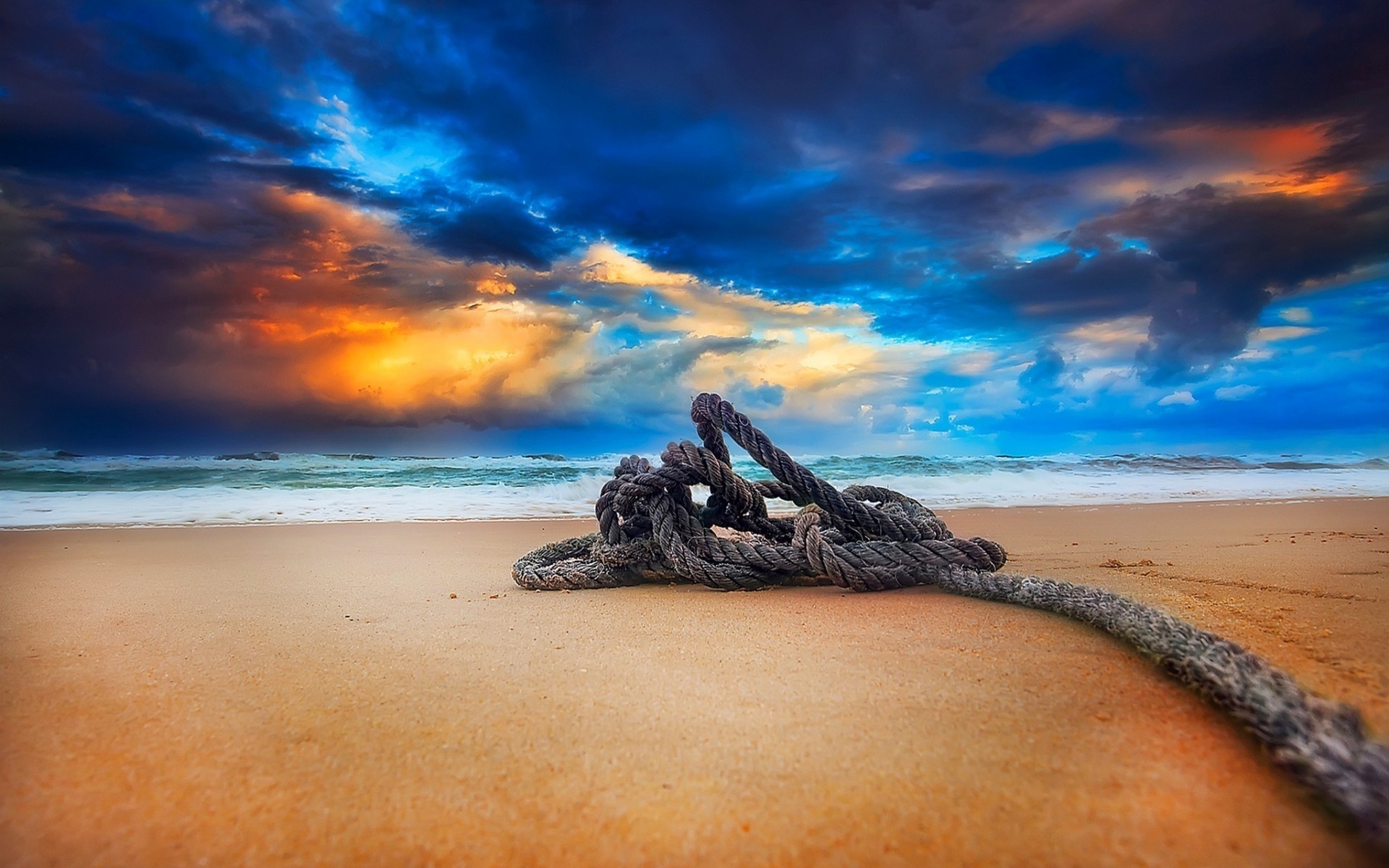 Pietre vicino al mare. Bel cielo nel palmo della tua mano