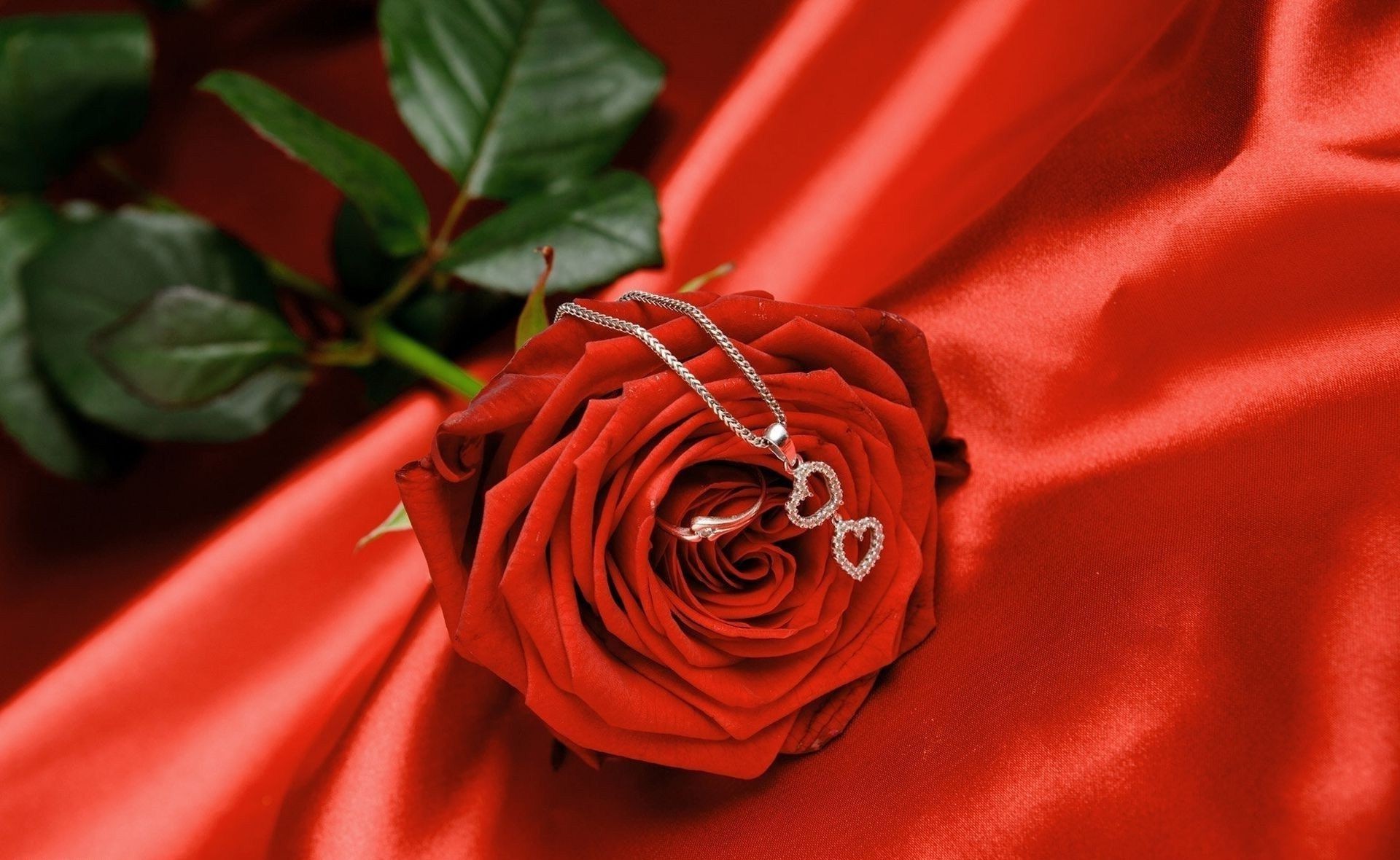 Rosa su tessuto rosso con ciondolo