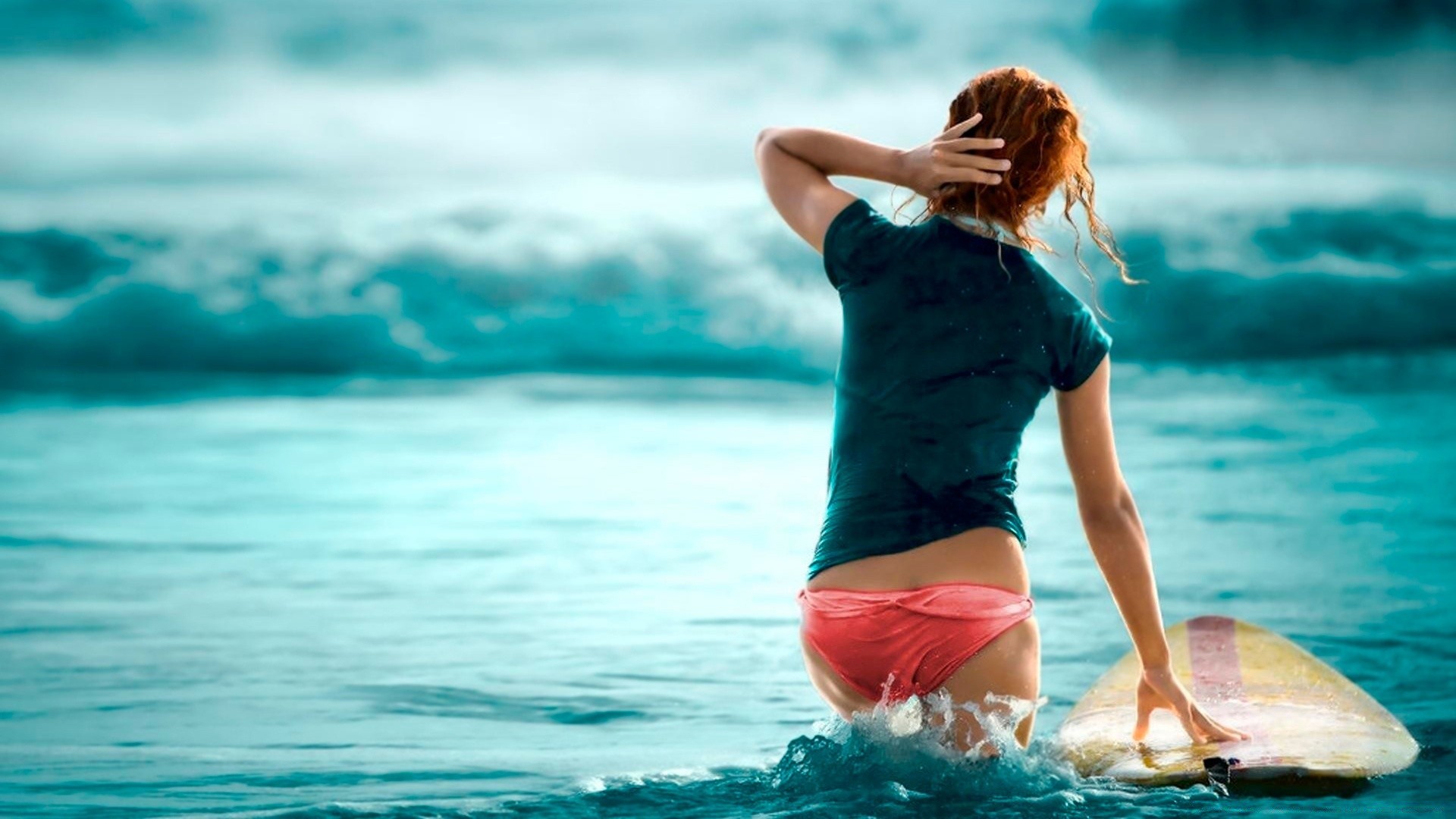 Il surfista con una tavola gialla è uscito per allenarsi