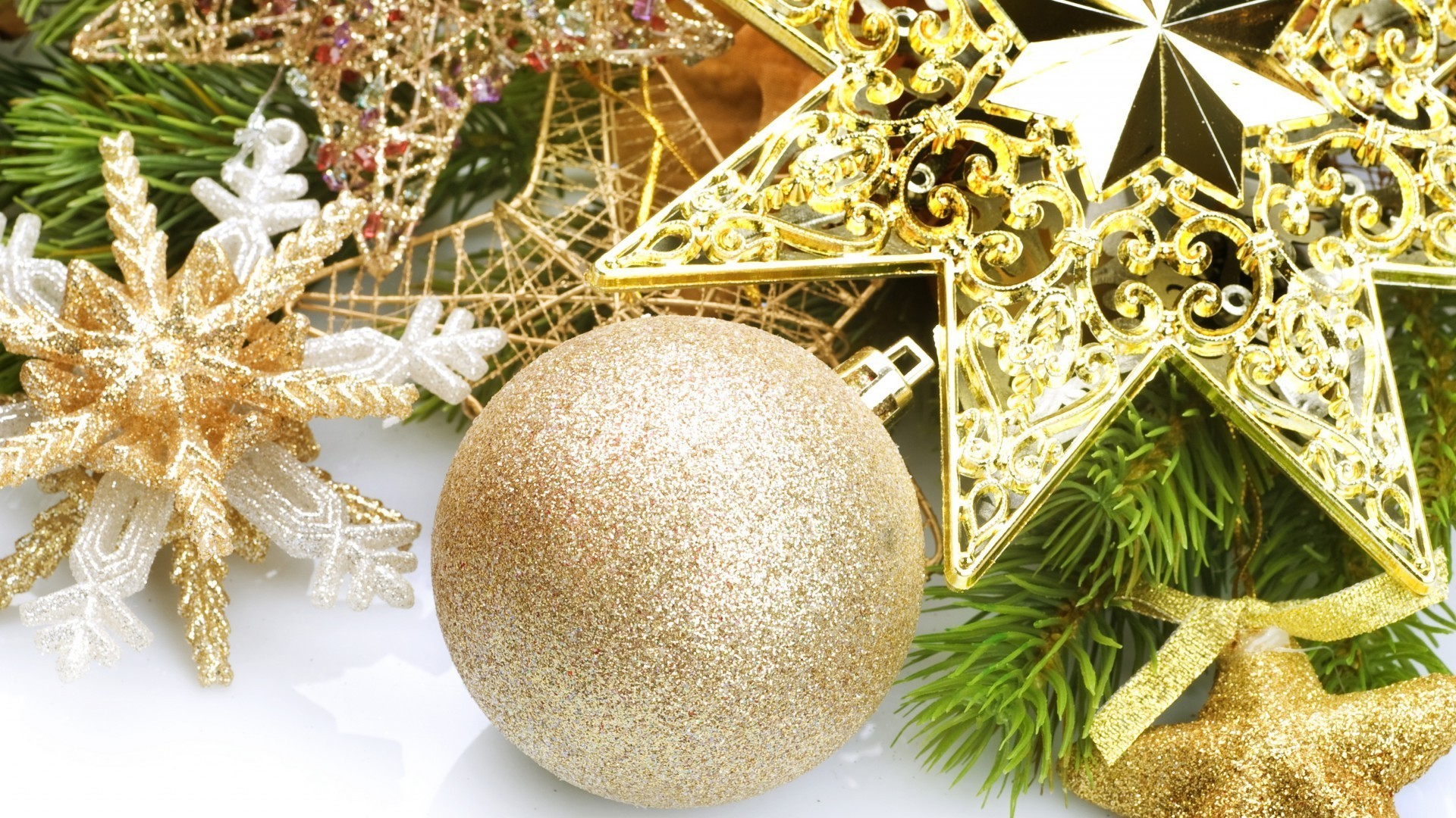 Decorazioni di capodanno sullo sfondo di rami di abete rossoDecorazioni di Capodanno sullo sfondo di rami di abete rosso