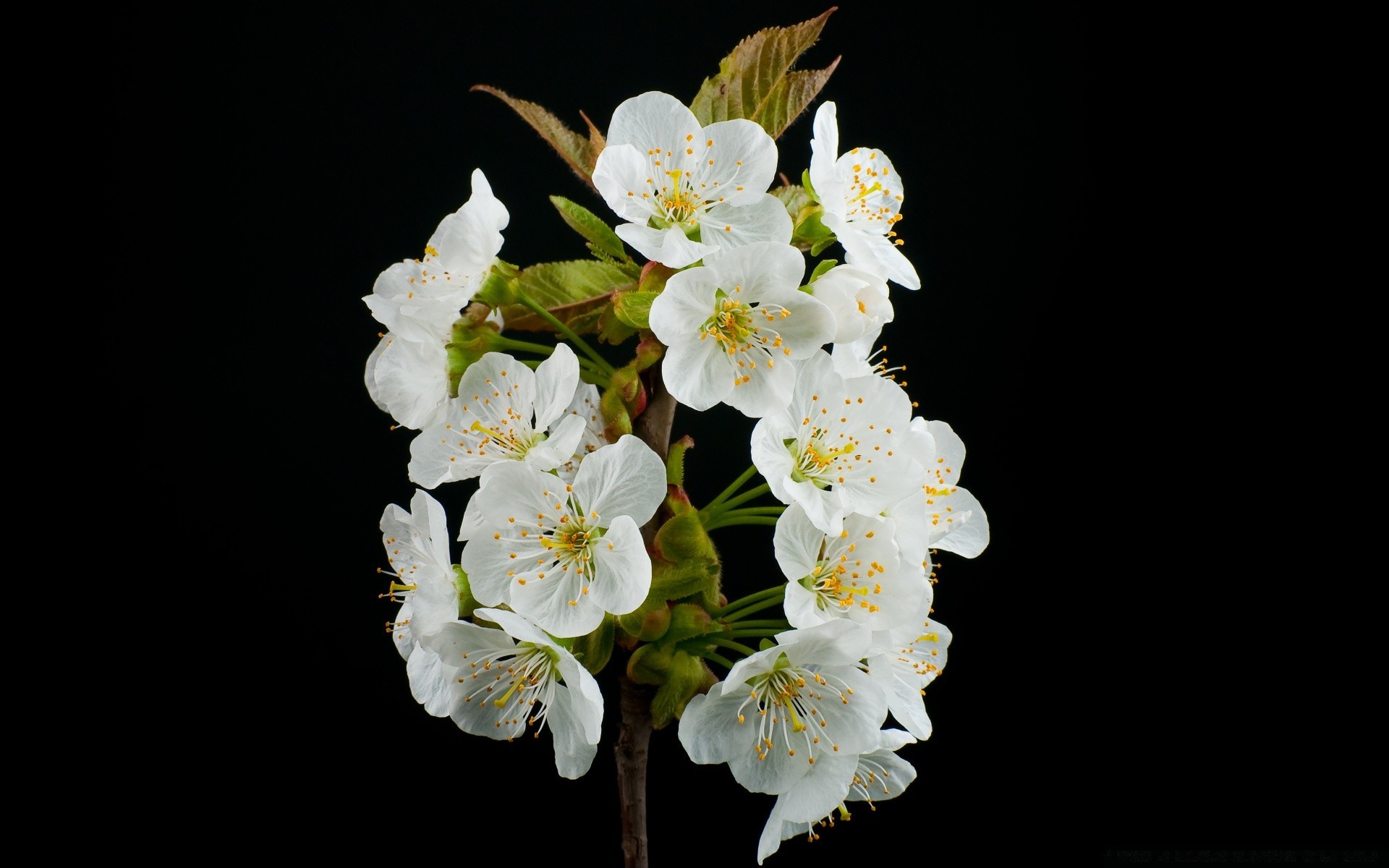 Fiori bianchi con un mezzo giallo su sfondo nero
