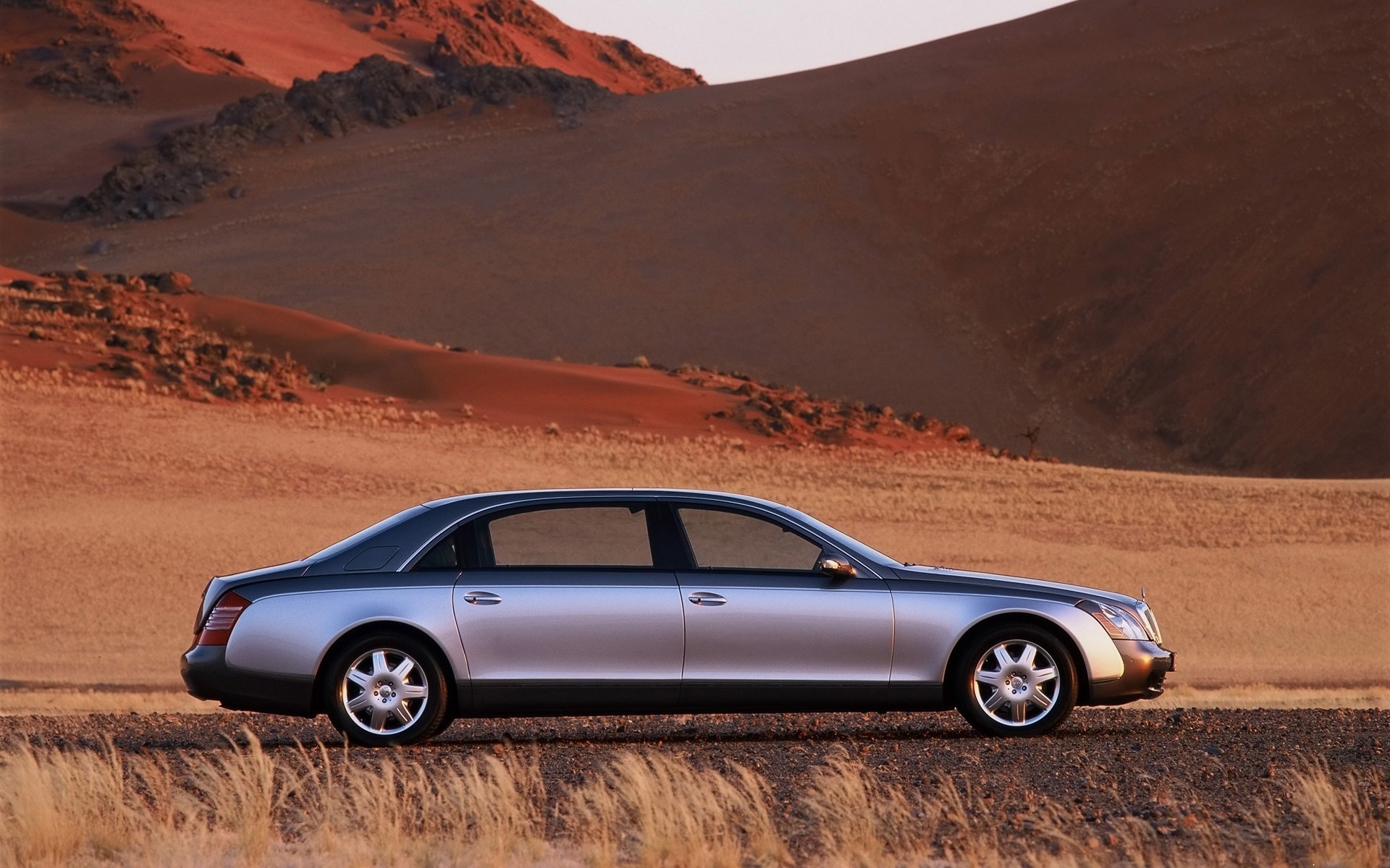 Auto chic parcheggiata sullo sfondo delle montagne