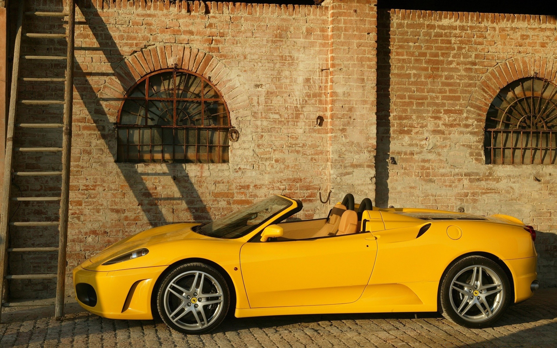 Decappottabile rosso su uno sfondo di parcheggio cupo