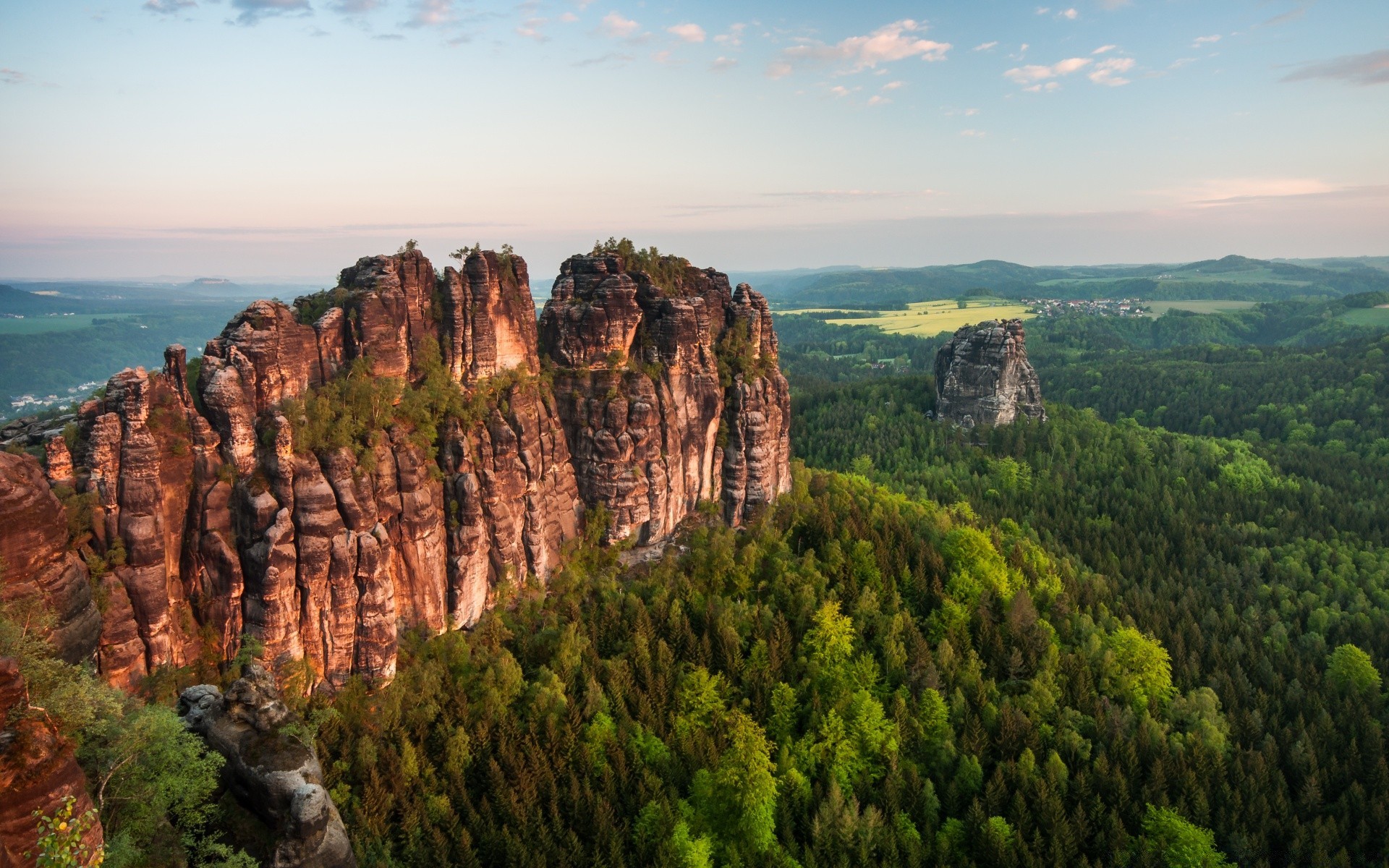 Fattoria con campo e foresta
