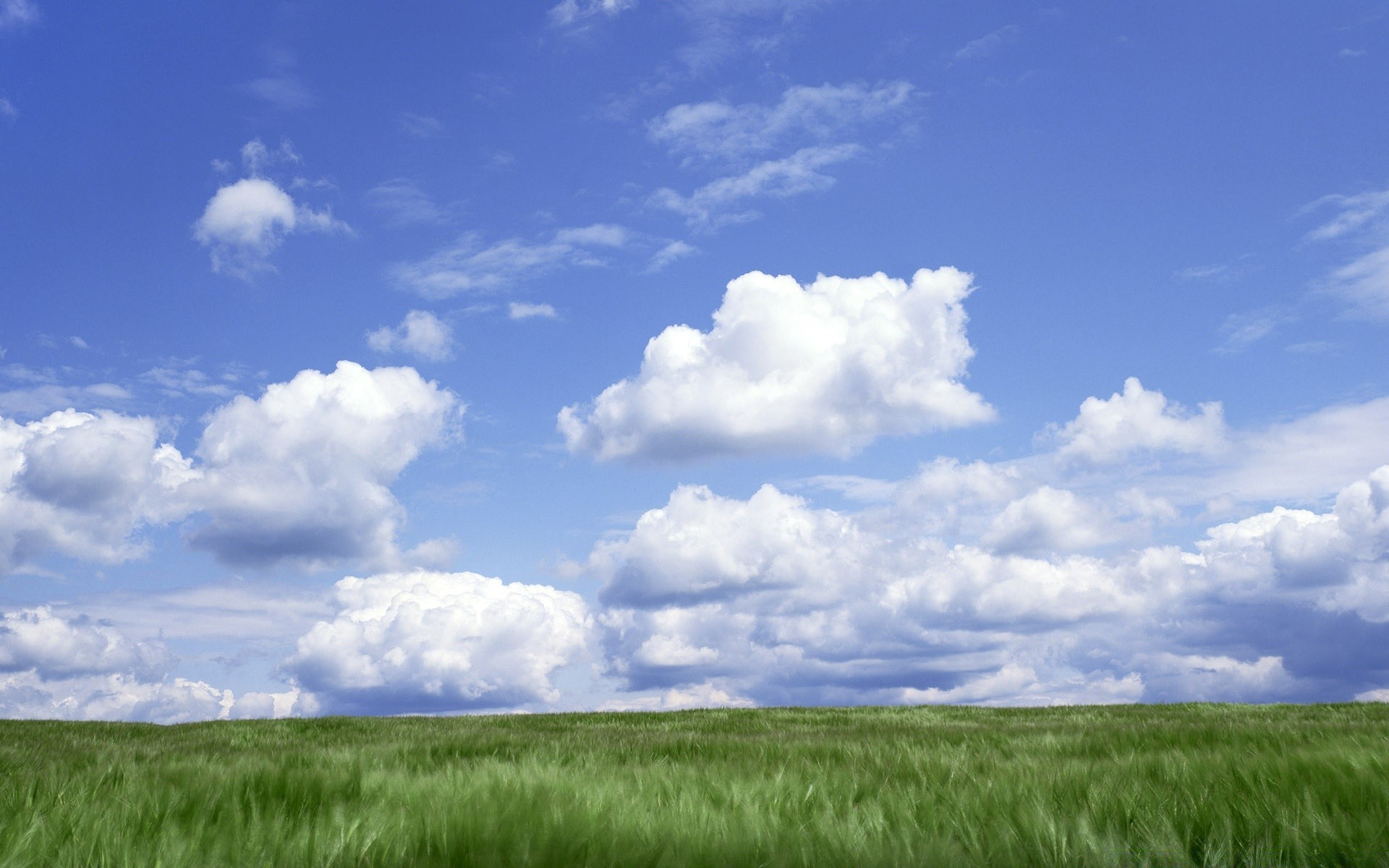 Pianura verde sotto il cielo blu con le nuvole