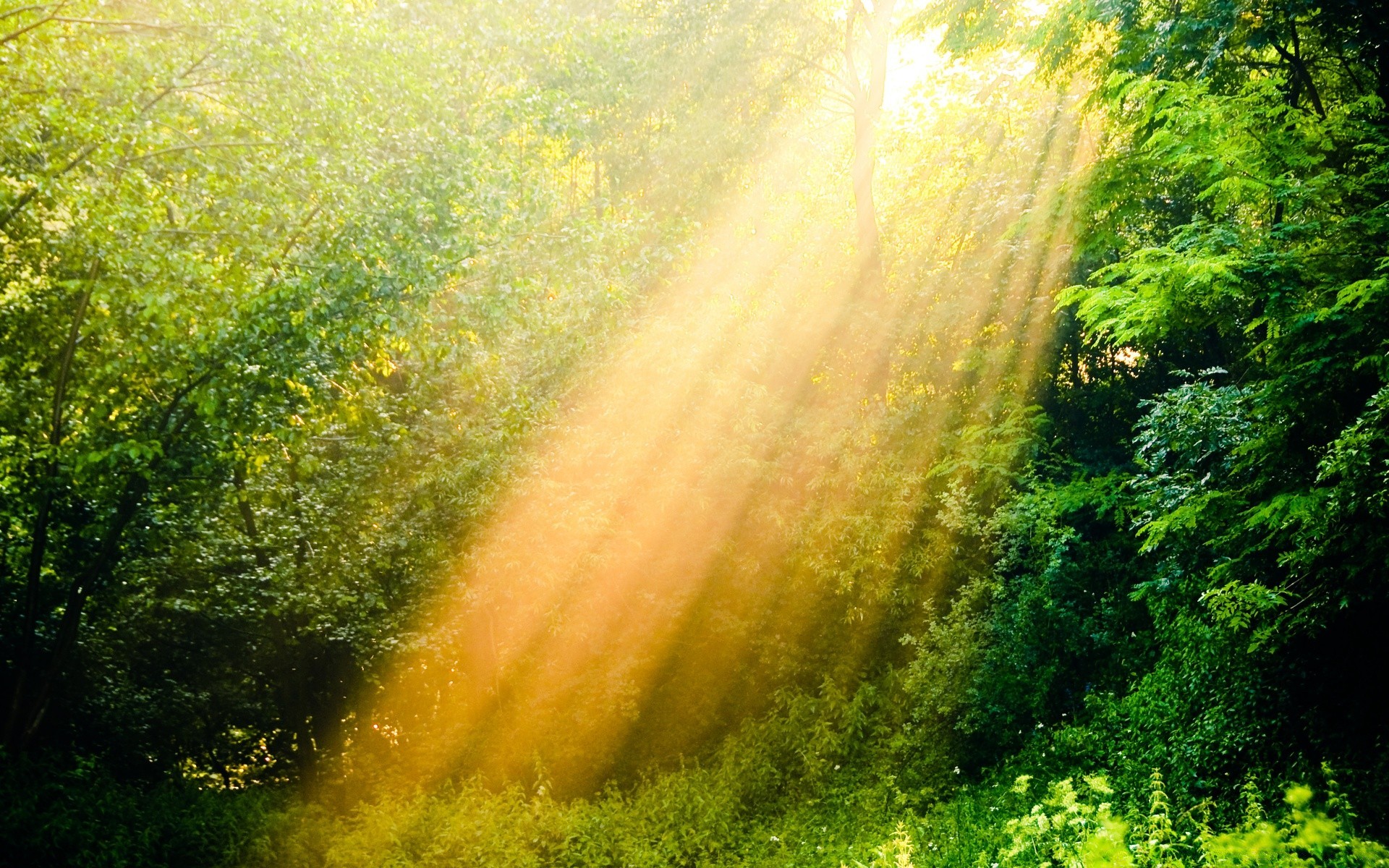 Alberi con tronchi dritti e uniformi in una foresta verde