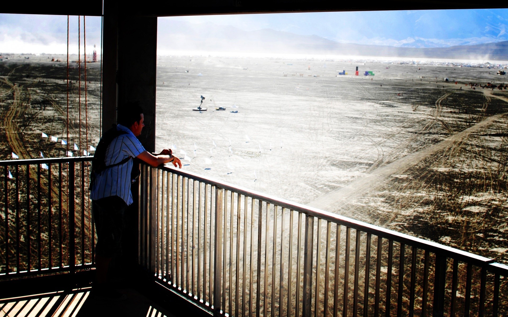 Vista dalla terrazza. Prospettiva, montagne in lontananza