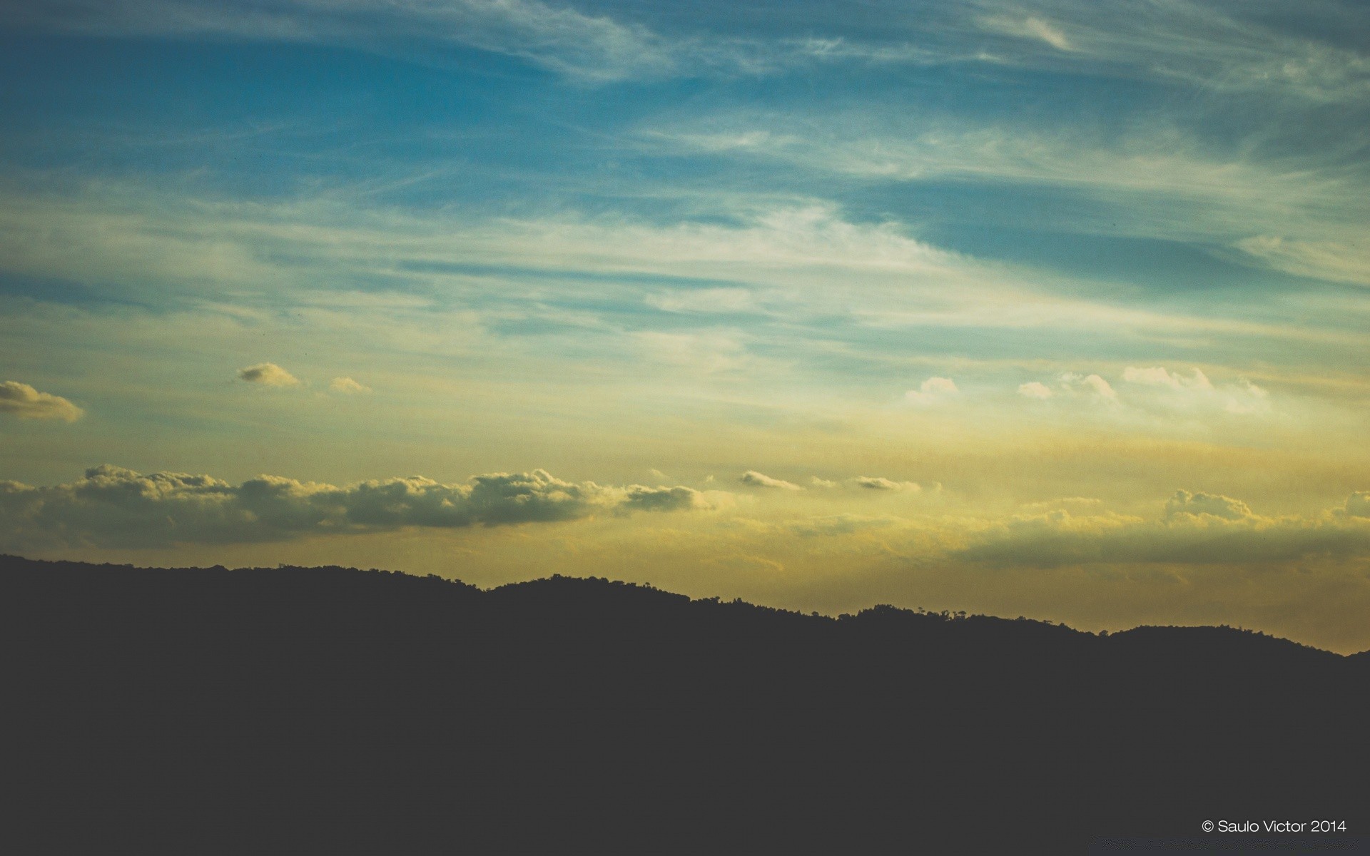Paesaggio con cielo lampeggiante e montagne al tramontoPaesaggio con cielo lampeggiante e montagne al tramonto